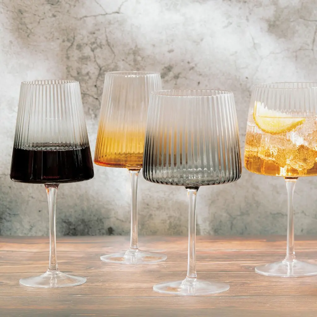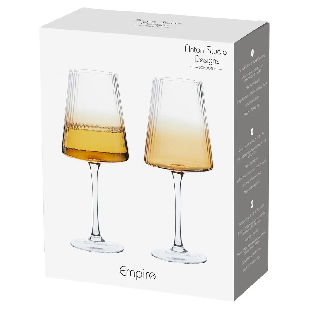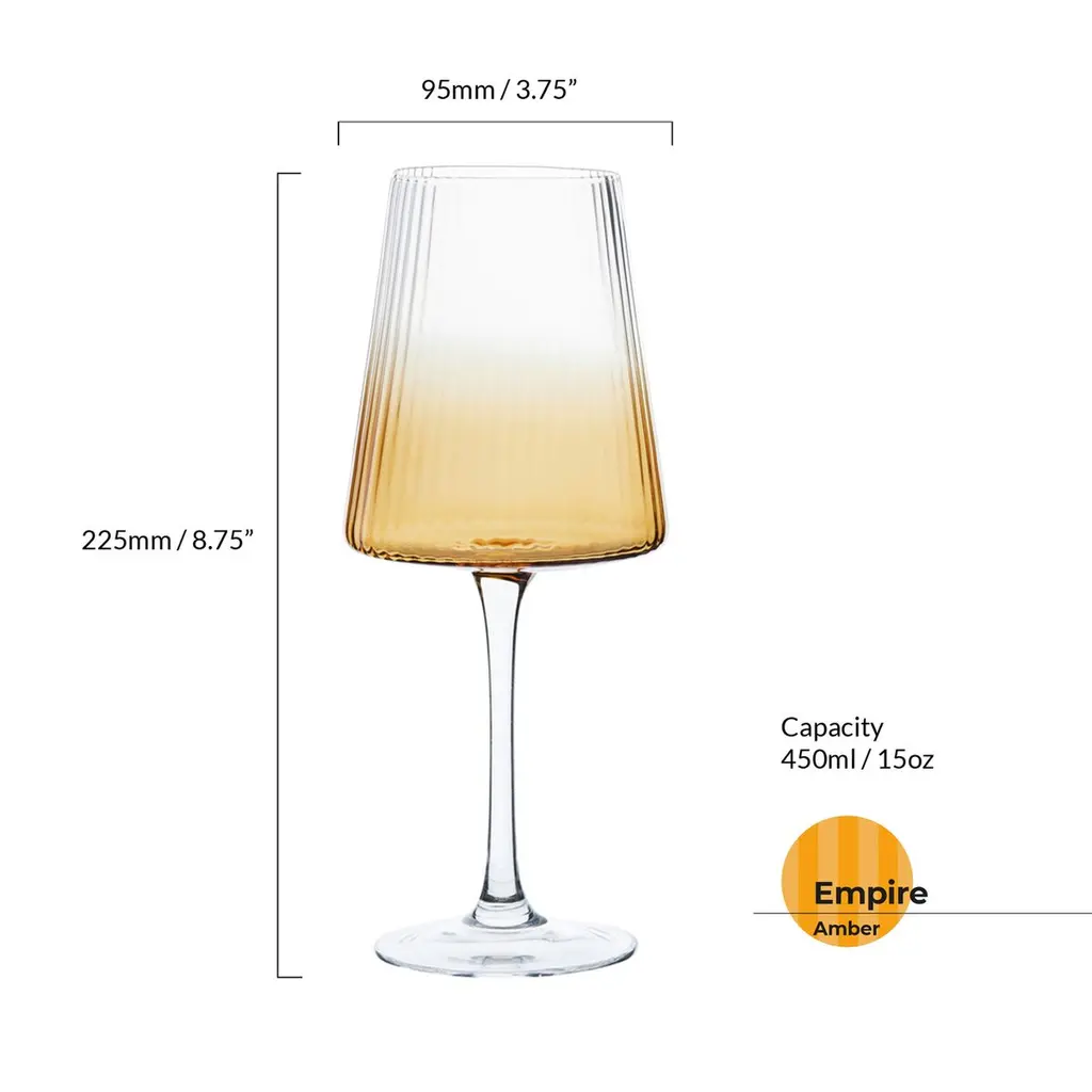 Sip your favorite wine in style with Empire wine glasses. Handcrafted by skilled artisans, each glass has a contemporary shape with rounded corners and tapered sides. The fine optic running up and down the bowl adds a touch of sophistication. Packaged in a smart gift box, this range includes a full suite of glassware to cater to all your entertaining needs.