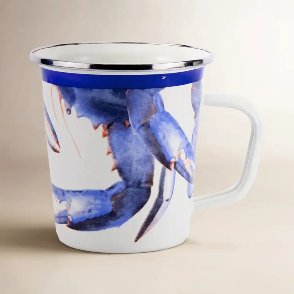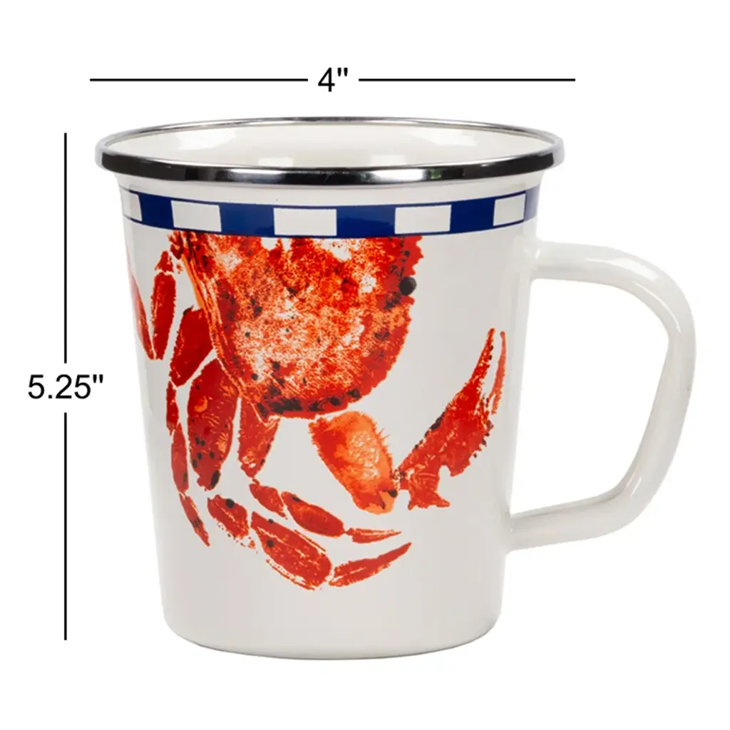 S/4 16 oz Latte Mug, 4 inch tall This enamelware is made of carbon steel coated with a porcelain enamel and trimmed in stainless steel. There will be variations in the shading of colors and pattern formations which are the results of the hand-dipped process. The swirl design is a classic, retro staple for enamelware cookware and serveware. The contrast of colors creates a distinct look and brings a casual artistic flair to your table setting. Each piece is individually hand crafted and is as unique as you are. Skilled artisans hand dip the white background color, then use a brush to hand apply the secondary color swirls. This creates a unique piece and design each time. The elegant and inviting aesthetic draws the eyes into the many spattered patterns flowing throughout. Your piece will be one-of-a-kind and exclusive to you as you create your own distinctive style.