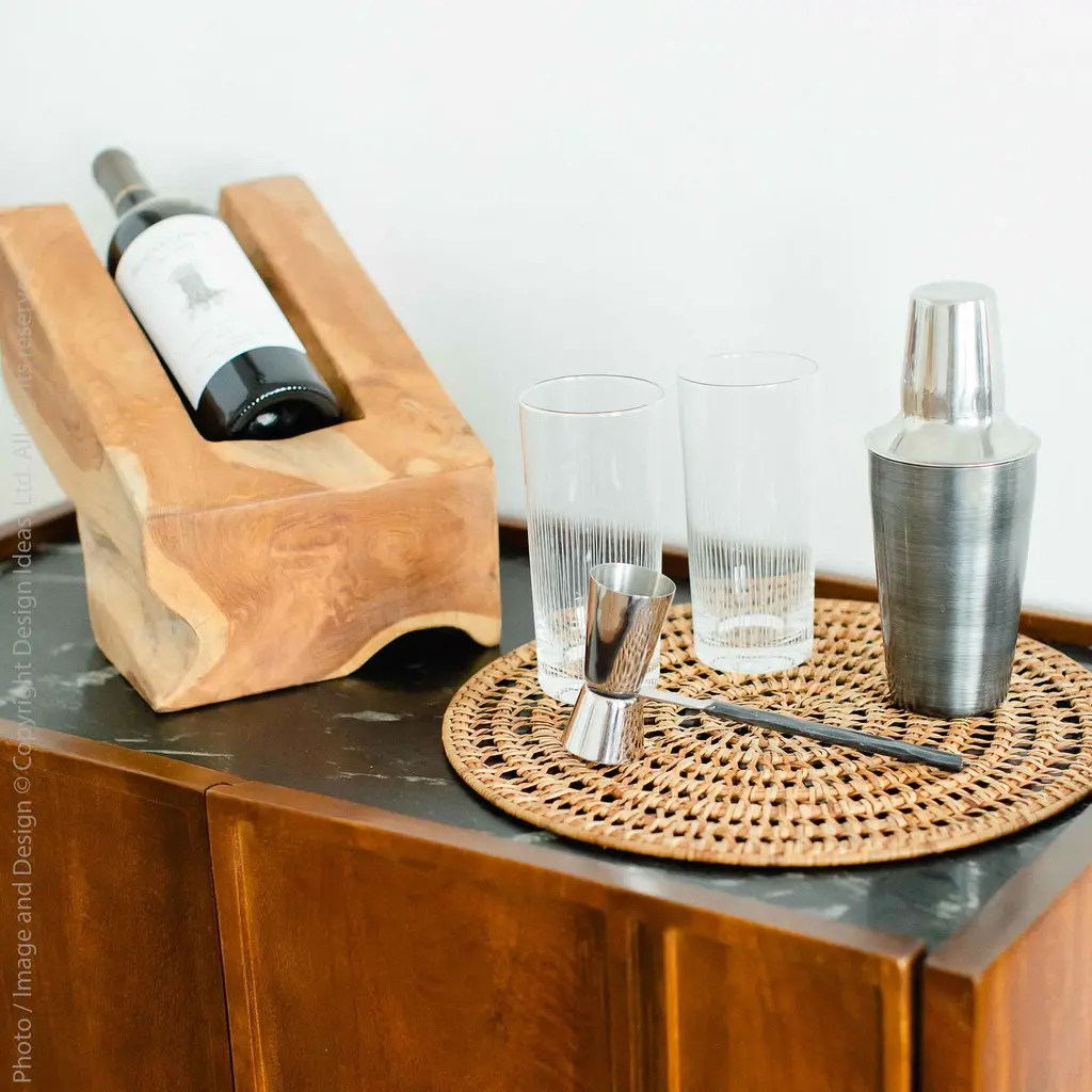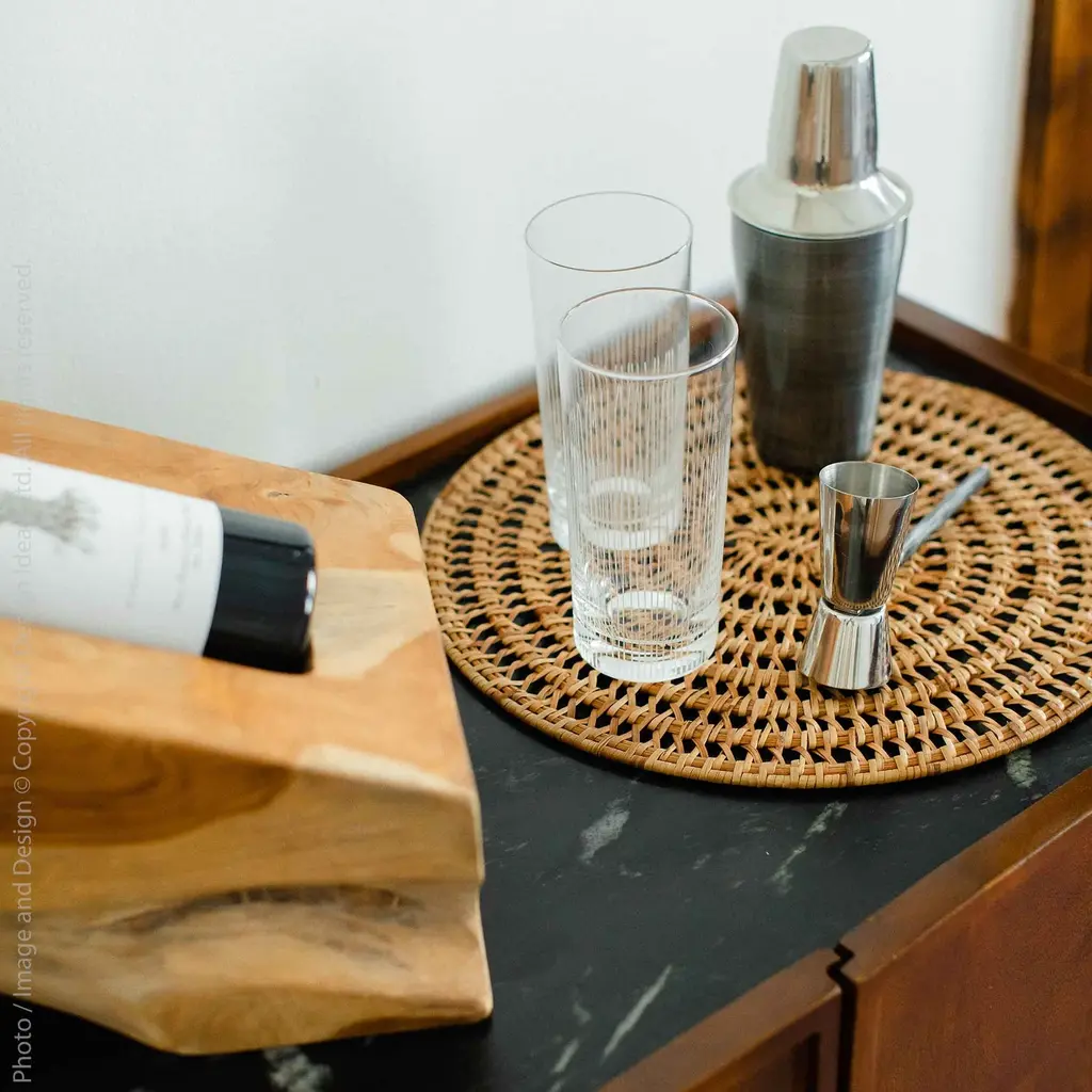 The texture in this glassware is etched by hand, line by delicate line. No two lines and no two pieces are exactly the same. A skilled artisan working with a fine grinding tool makes every curve and carving. You feel the impression the artisans have left each time you hold the glass in your hand.