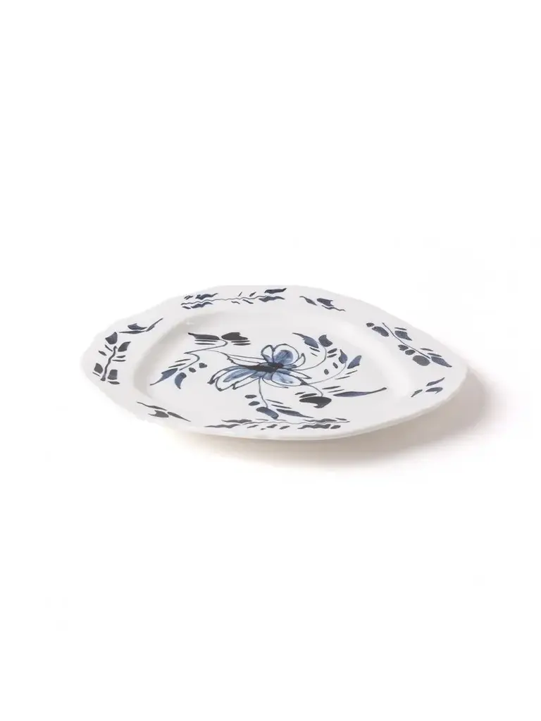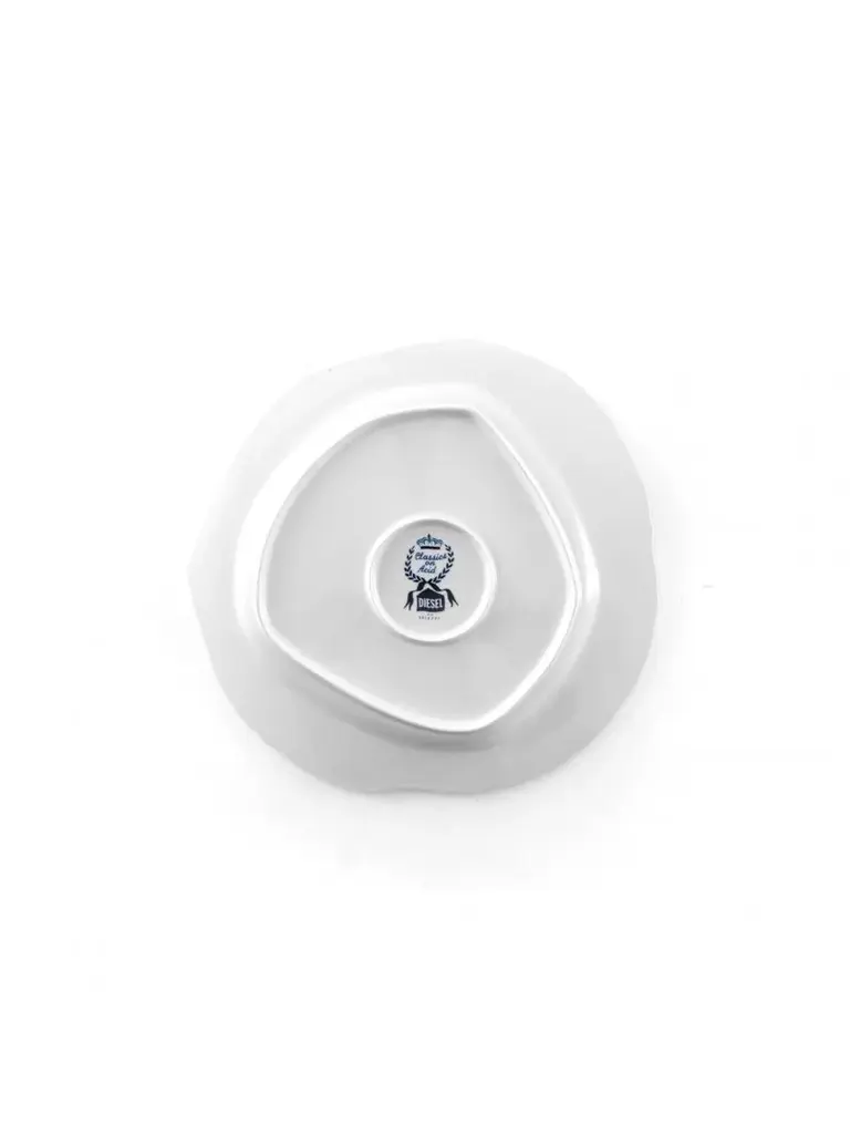 Porcelain Dinner plate. A classic look with a crazy twist for party lovers and eclectics.Beautiful on the wall, marvelous for an unexpected distorted table set up.