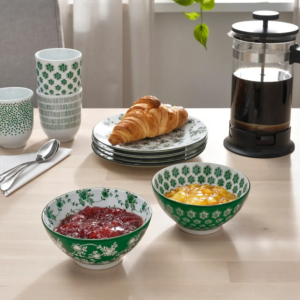 ENTUSIASM Bowl - patterned/green 4 ½ ". Unique dinnerware with patterns, details and raised reliefs that exude tradition and craftsmanship.