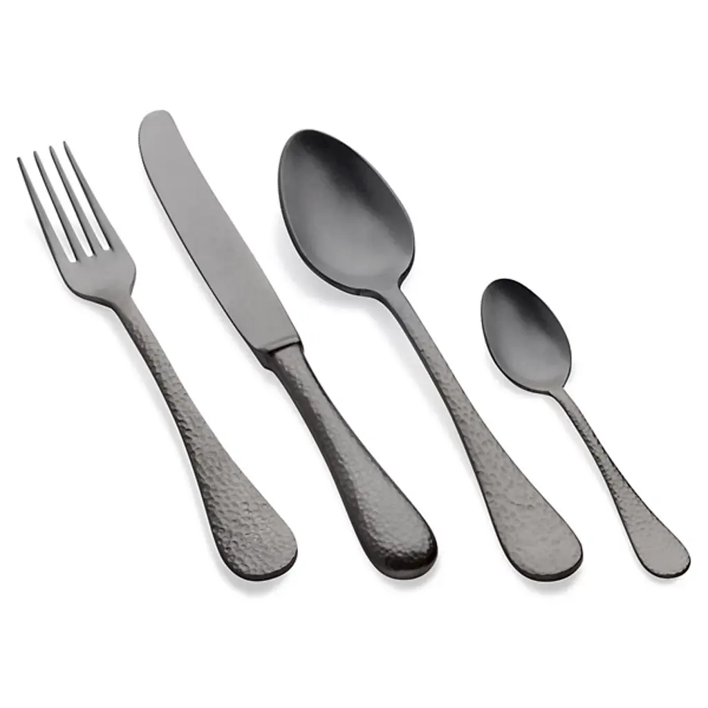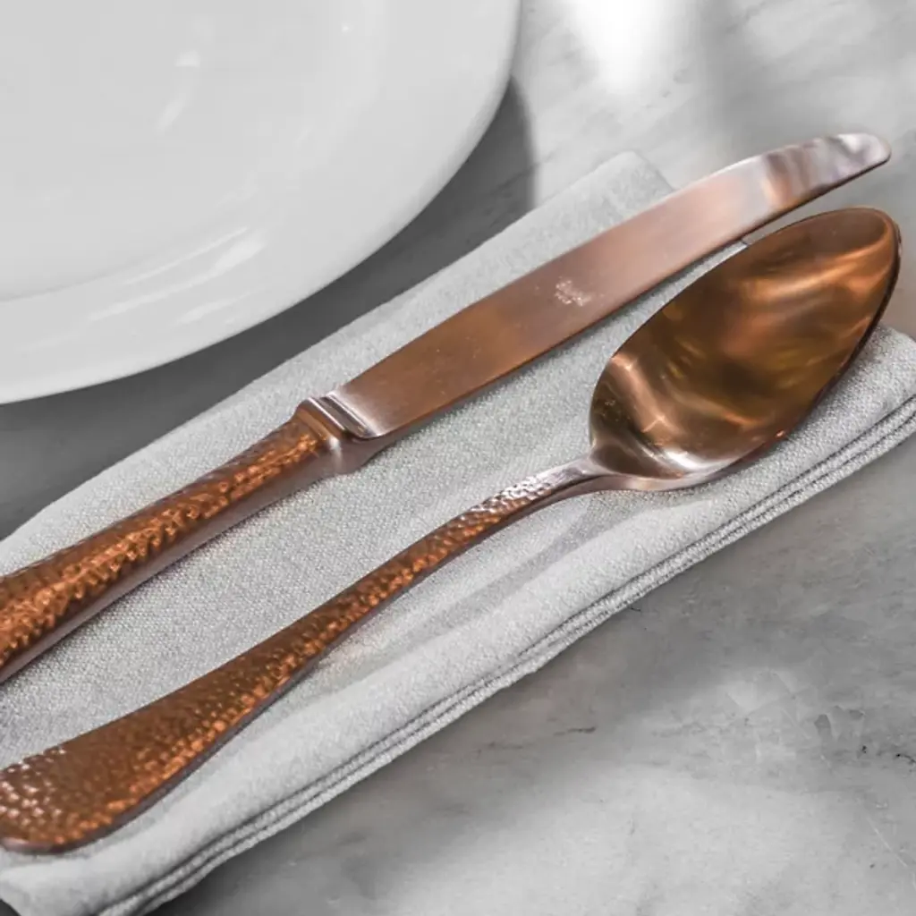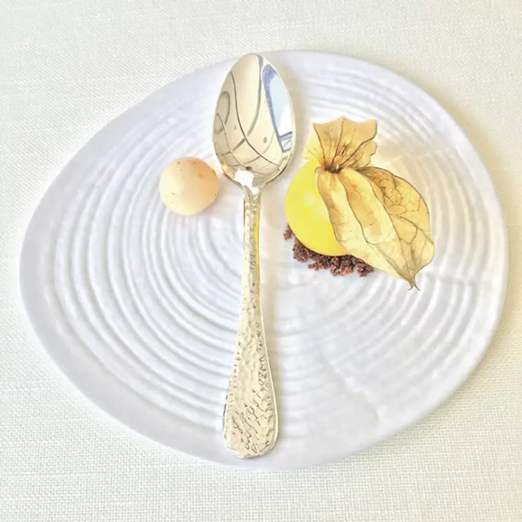 Epoque 5-Piece Flatware Place Setting by Mepra combines elegance and functionality in luxury dining. Made in Italy, this collection features 18/10 stainless steel coated with a PVD titanium layer, ensuring longevity and sophistication. Perfect for stylish gatherings in a luxury dining room setting, this set is dishwasher safe for hassle-free maintenance. With its quality craftsmanship and chic design, the Epoque Cutlery Set is an exquisite addition to any dining decor, enhancing your meal experiences.
