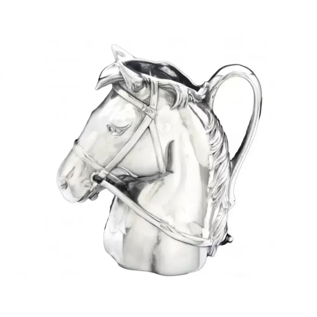 Absorb every striking detail of Arthur Court's Horse and Rope Pitcher as you use it for full effect. Indented ropes twist around each other to create the beautifully textured base and handle of this piece. Horses exhibit tremendous realism in their faces and manes as they display in the center of this handmade, aluminum pitcher.