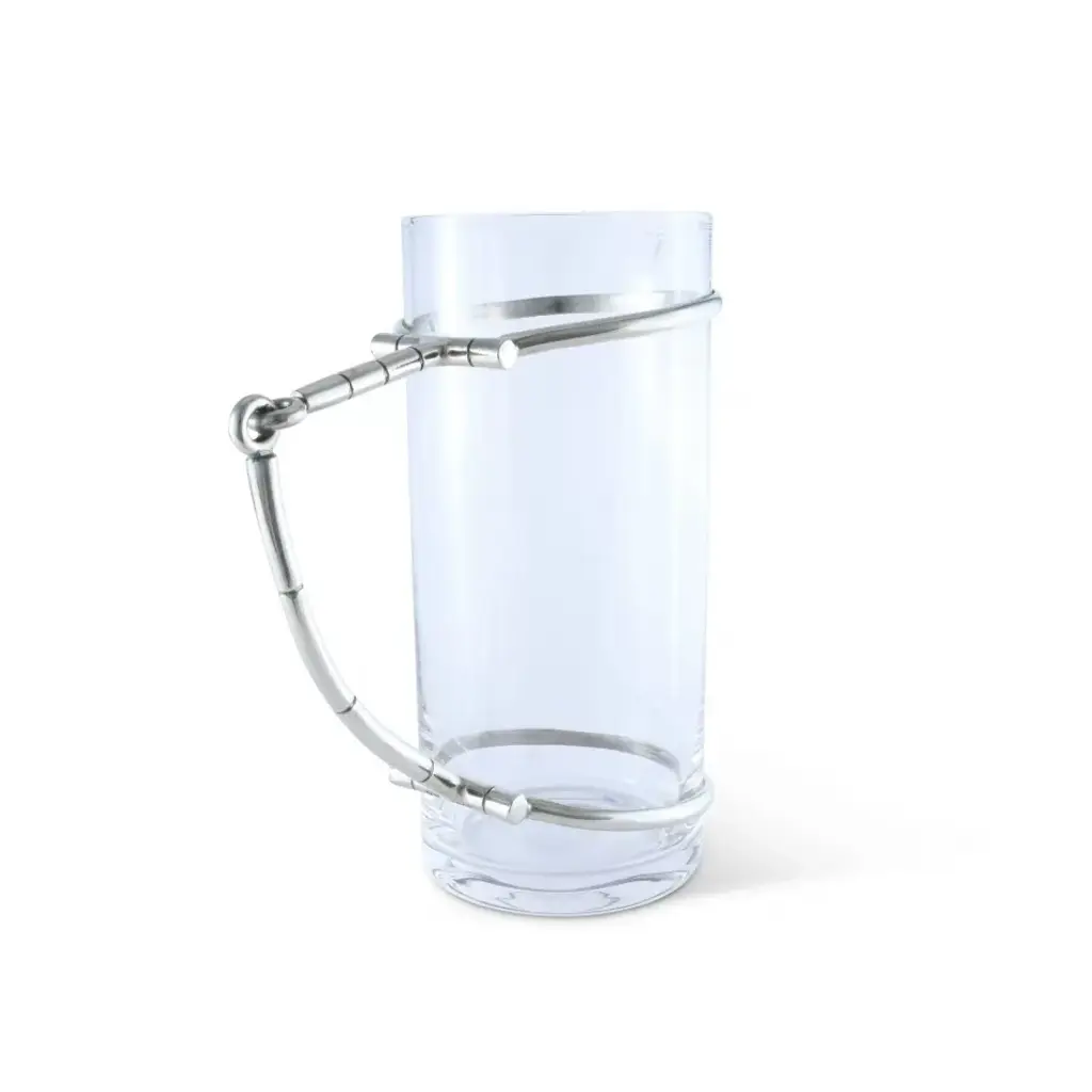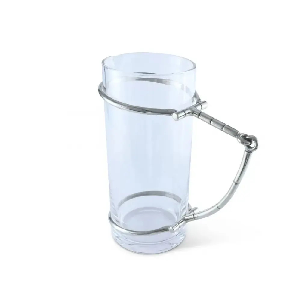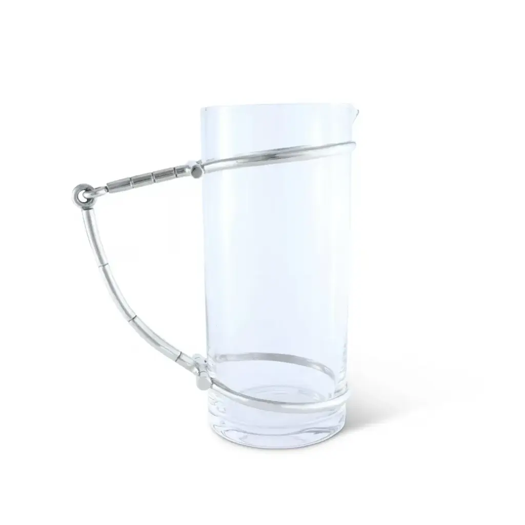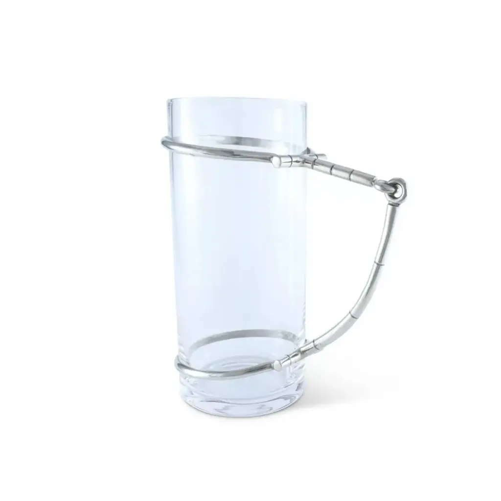Perfect for serving race day refreshments, Vagabond House's Horse Bit Glass Pitcher offers a unique take on traditional drinkware. An enlarged snaffle bit secures its rings around each end of the cylindrical pitcher as its mouthpiece curves into a handle. This pure-pewter accent displays remarkable realism in its jointed design. Vagabond House is a family-owned American company specializing in fine pewter tableware, servingware and giftware. Largely inspired by nature, their exclusive products are designed to be unique, functional heirlooms for those who seek to express tradition and style in both family and formal entertaining.