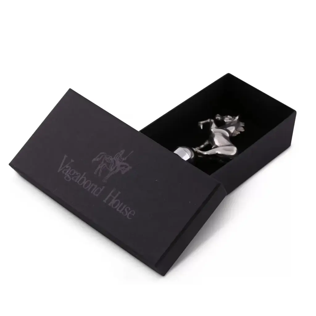 Perfect for race days at the track, Vagabond House's Thoroughbred Bottle Stopper highlights the esteemed form of these creatures. An exquisite, pure-pewter stallion shows off its muscular physique as it prances at the top of this piece. Remarkable detail in the horse's mane and tail makes these features appear darker than the rest of the design. Vagabond House is a family-owned American company specializing in fine pewter tableware, servingware and giftware. Largely inspired by nature, their exclusive products are designed to be unique, functional heirlooms for those who seek to express tradition and style in both family and formal entertaining.
