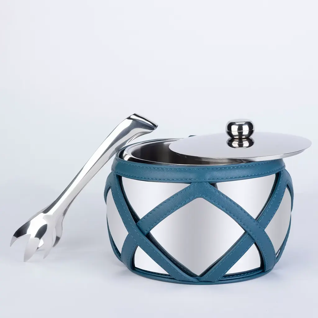 Escher Amalfi Blue Ice Bucket With Ice Tongs