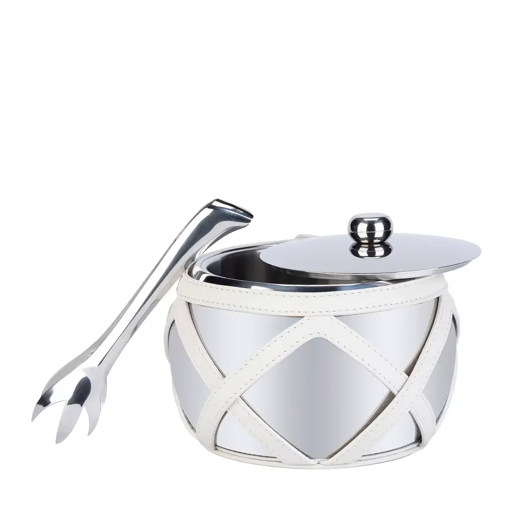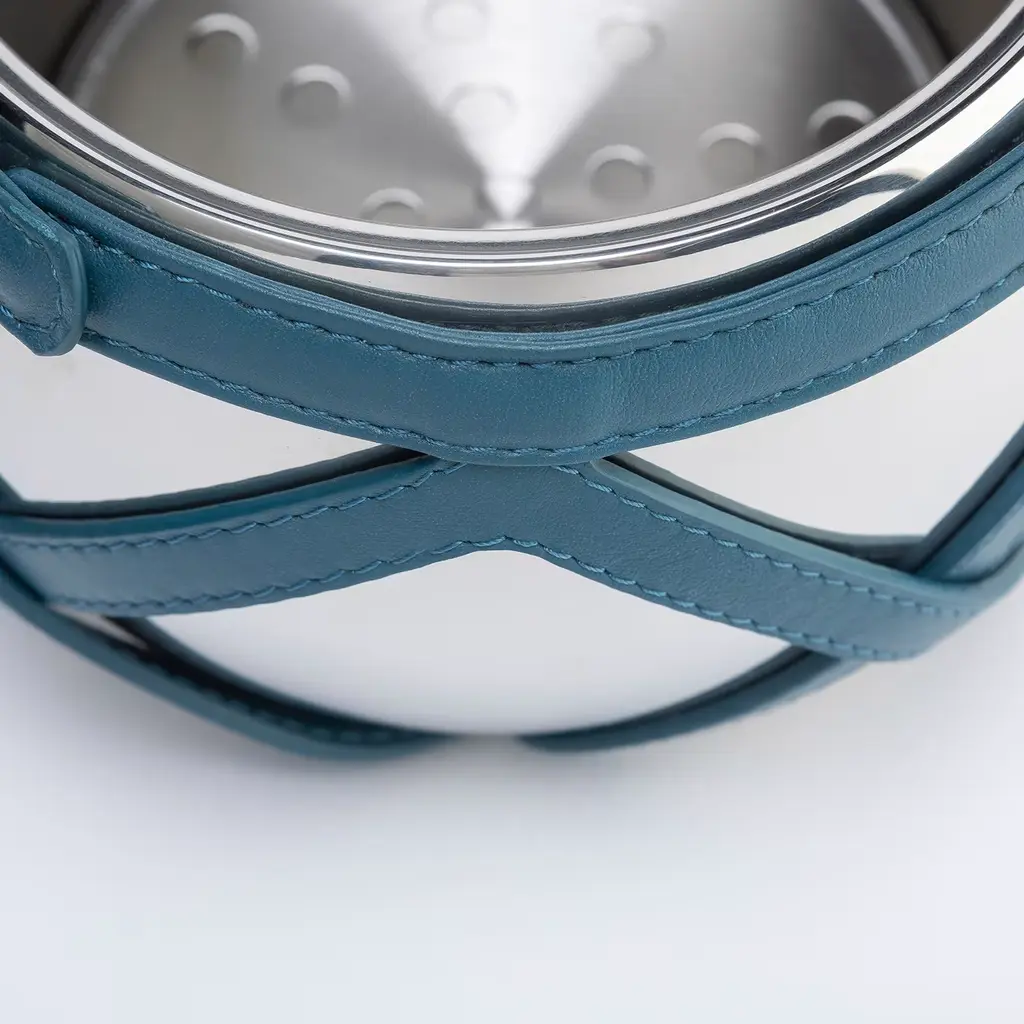 The thermal ice bucket with a lid, part of the Escher collection is perfect for preserving low temperatures while maintaining an artistic and captivating design. In line with the collection, it features interwoven leather bands that create rhomboidal geometries inspired by Escher’s meticulous works. Please, ask the Concierge service for further information.