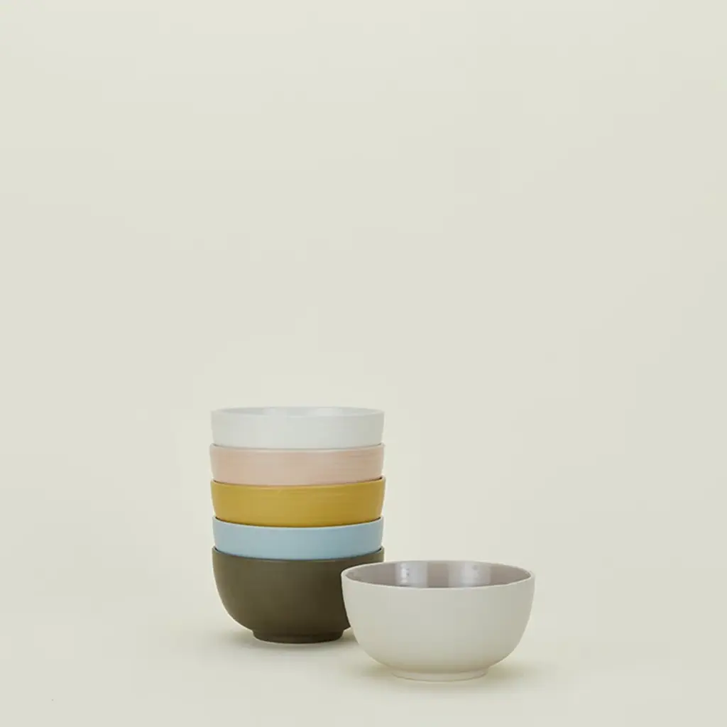 Everyday essentials, elevated. This set of four cereal bowls is crafted from durable stoneware with soft concentric ripples and a subtle footed base that evokes the feel of hand-thrown ceramics. Their wide, deep shapes are ideal for cereal, soup, or snacks, and they nest to save valuable cabinet space. Dishwasher, microwave, and oven safe. Available in a range of colors to mix + match.