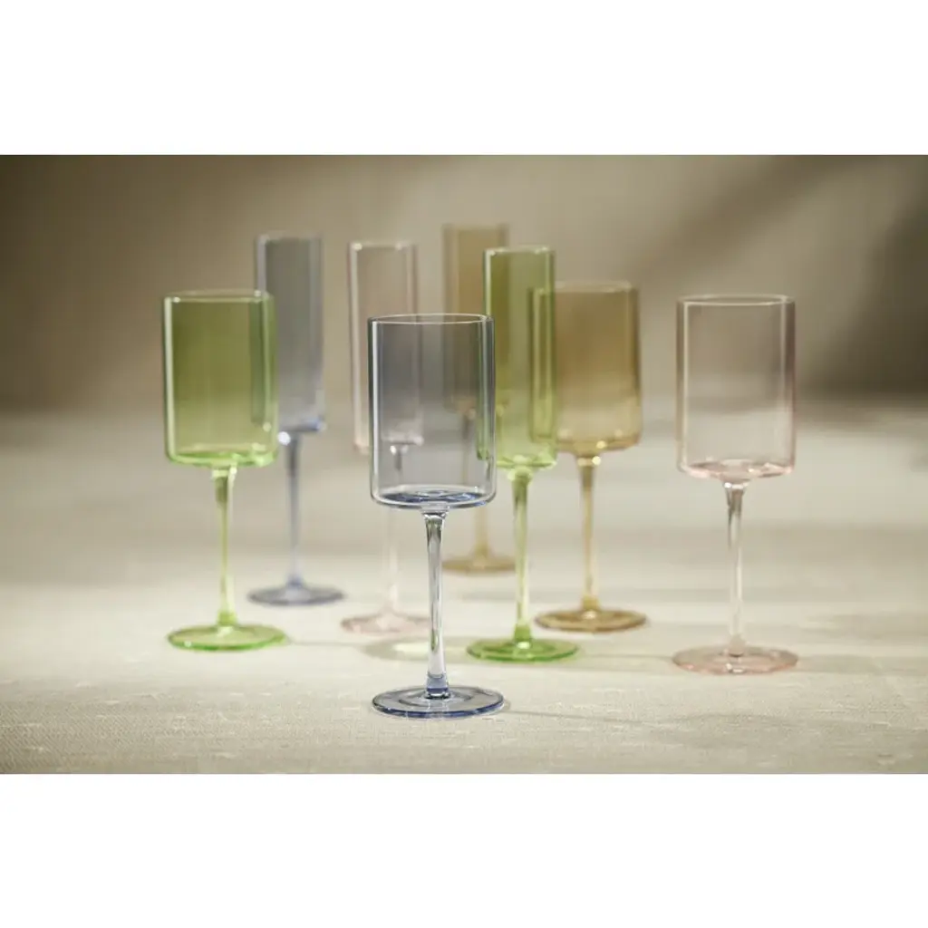 Update your glassware collection with this set of wine glasses. The eye-catching colors are refreshingly modern and inviting. Features beautiful mouth-blown glassware with its muted color enhancing the brilliant flair of the tall and refined stem and the cylindrical bowl, respectively.