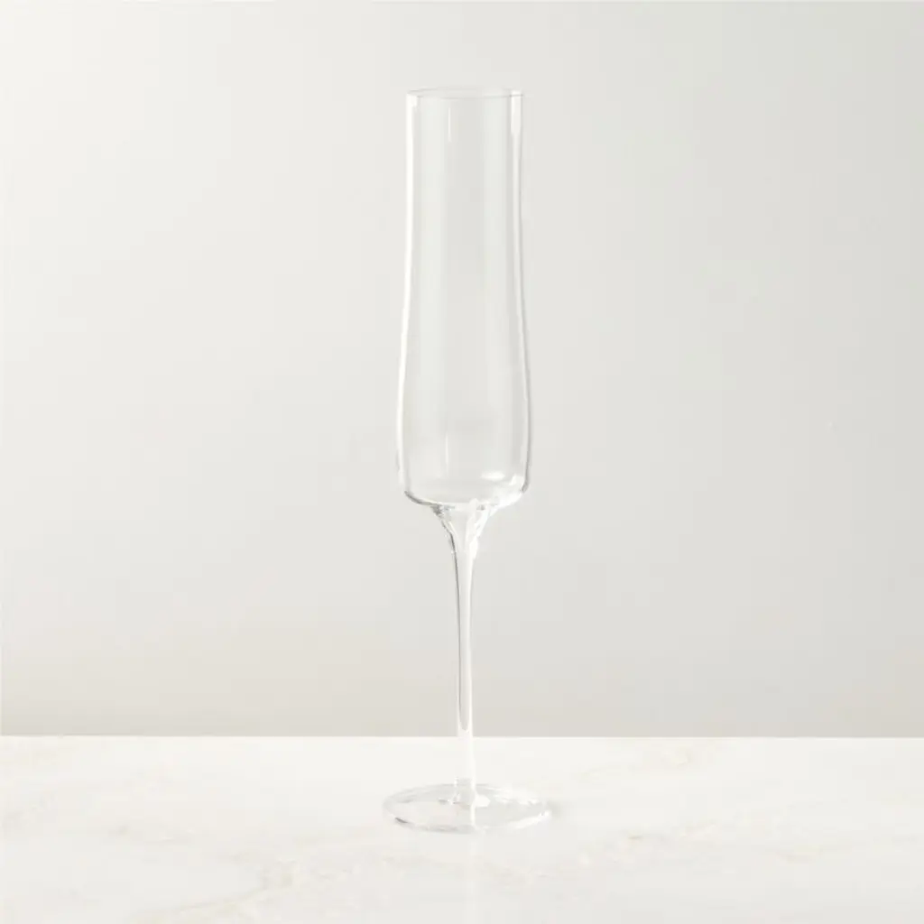 Flared champagne flute puts a modern twist on a classic design that dates back to the 18th century. The slim bowl is handblown into a mold, then pulled into the stem for a unique, pointed silhouette. Crafted in southern Poland, a region renowned for producing high-quality glassware since 1923. CB2 exclusive.