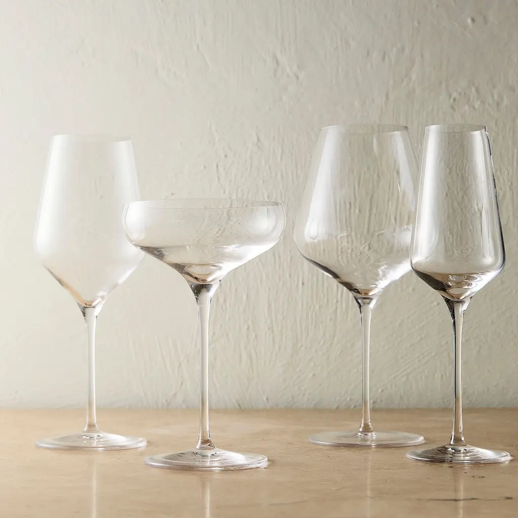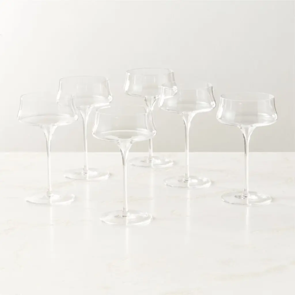 Elegant coupe glass features a flared bowl to showcase the cocktail within. The bowl is handblown into a mold, then pulled into the stem for a unique, pointed silhouette. Crafted in southern Poland, a region renowned for producing high-quality glassware since 1923. CB2 exclusive.