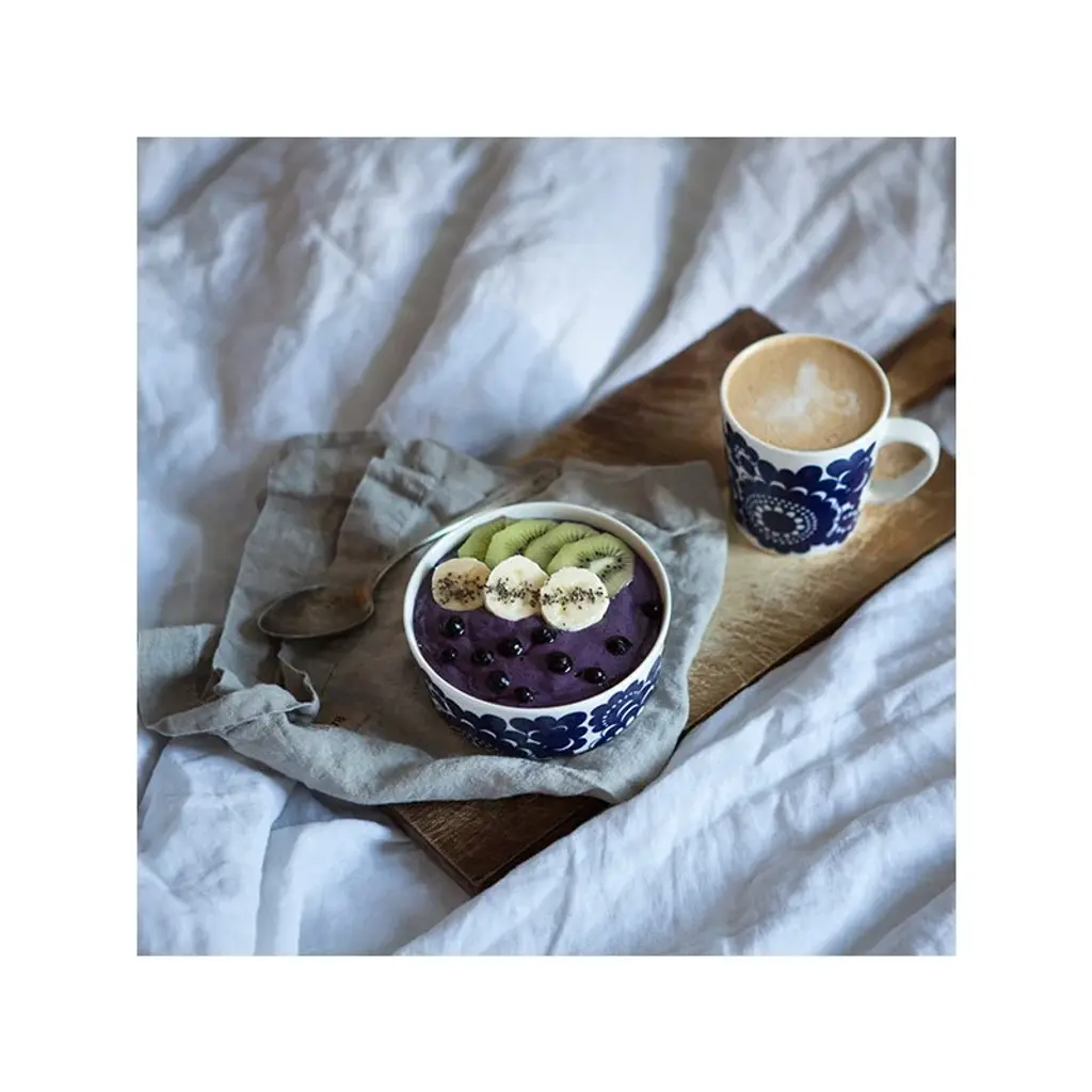 Arabia’s Esteri mug features a beautiful floral motif, designed by Esteri Tomula in honor of the factory’s centenary in 1973. Named after its designer, the Esteri pattern adorned tableware originally both in blue and brown. The fresh blue-and-white pattern adds a lovely touch of Finnish design of the 1970s to casual dinners as well as celebrations.