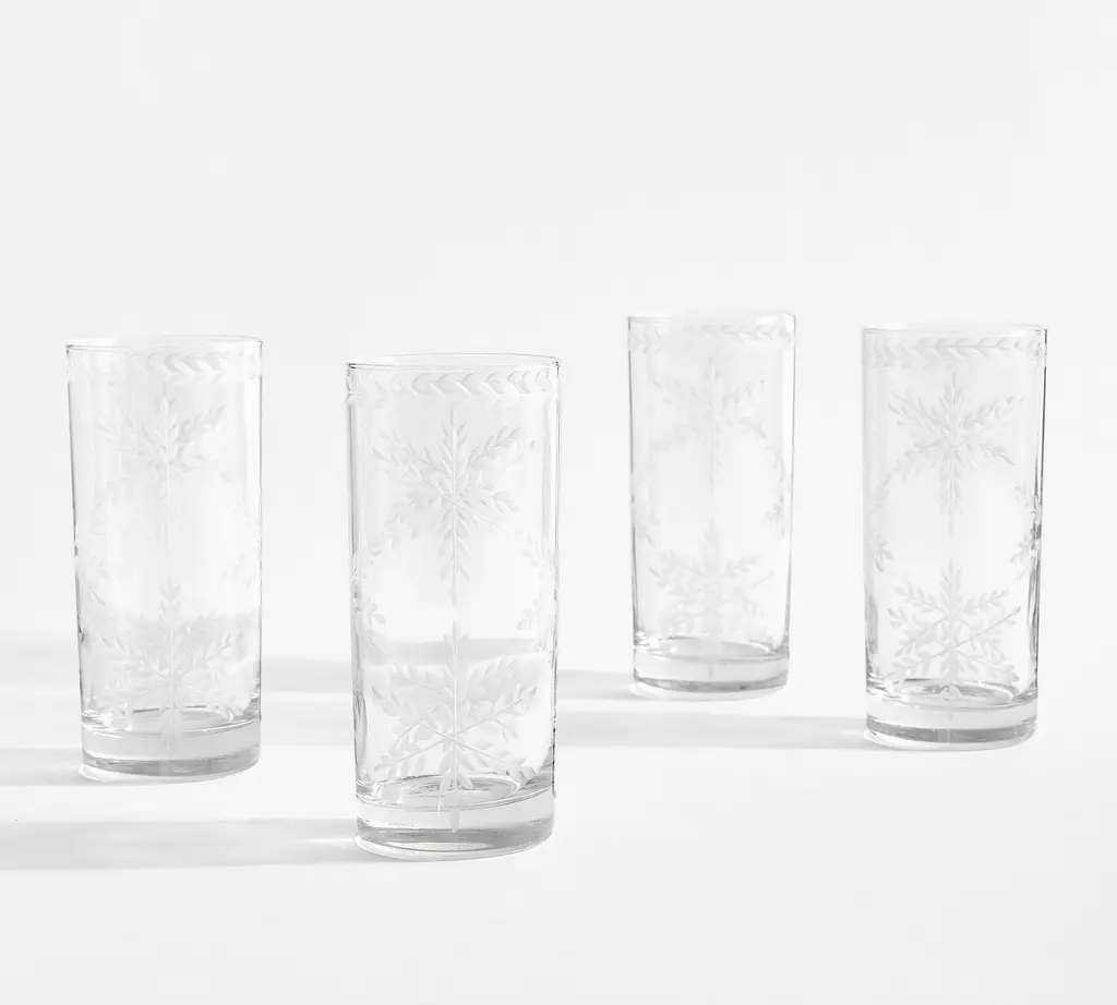 Etched Glass Snowflake Cocktail Glasses - Set Of 4