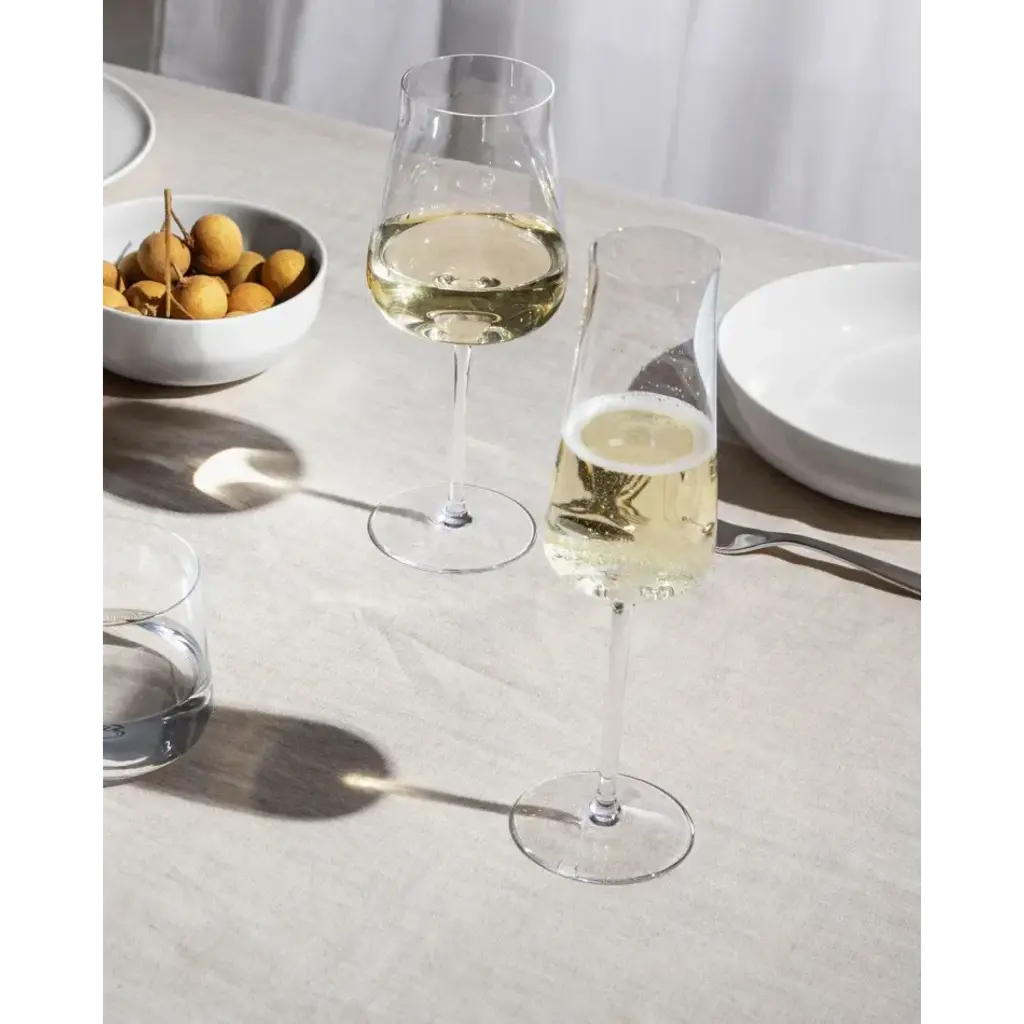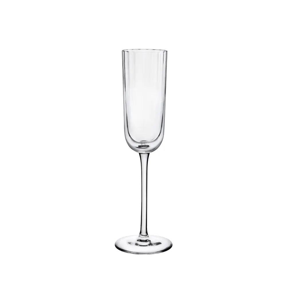 Eugenia is a set of crystalline glasses, complete with a jug and decanter, designed to cater to every requirement of contemporary dining. The name is a tribute to Alberto Alessi’s winery, “La signora Eugenia e il passero solitario”, whose products come in a bottle inspired by a design by Leonardo da Vinci. Taking his cue from this bottle, Naoto Fukasawa developed a set characterised by pure, essential design, featuring a line with an obtuse angle, "Donkaku" in Japanese, which becomes the formal characteristic of the entire set.