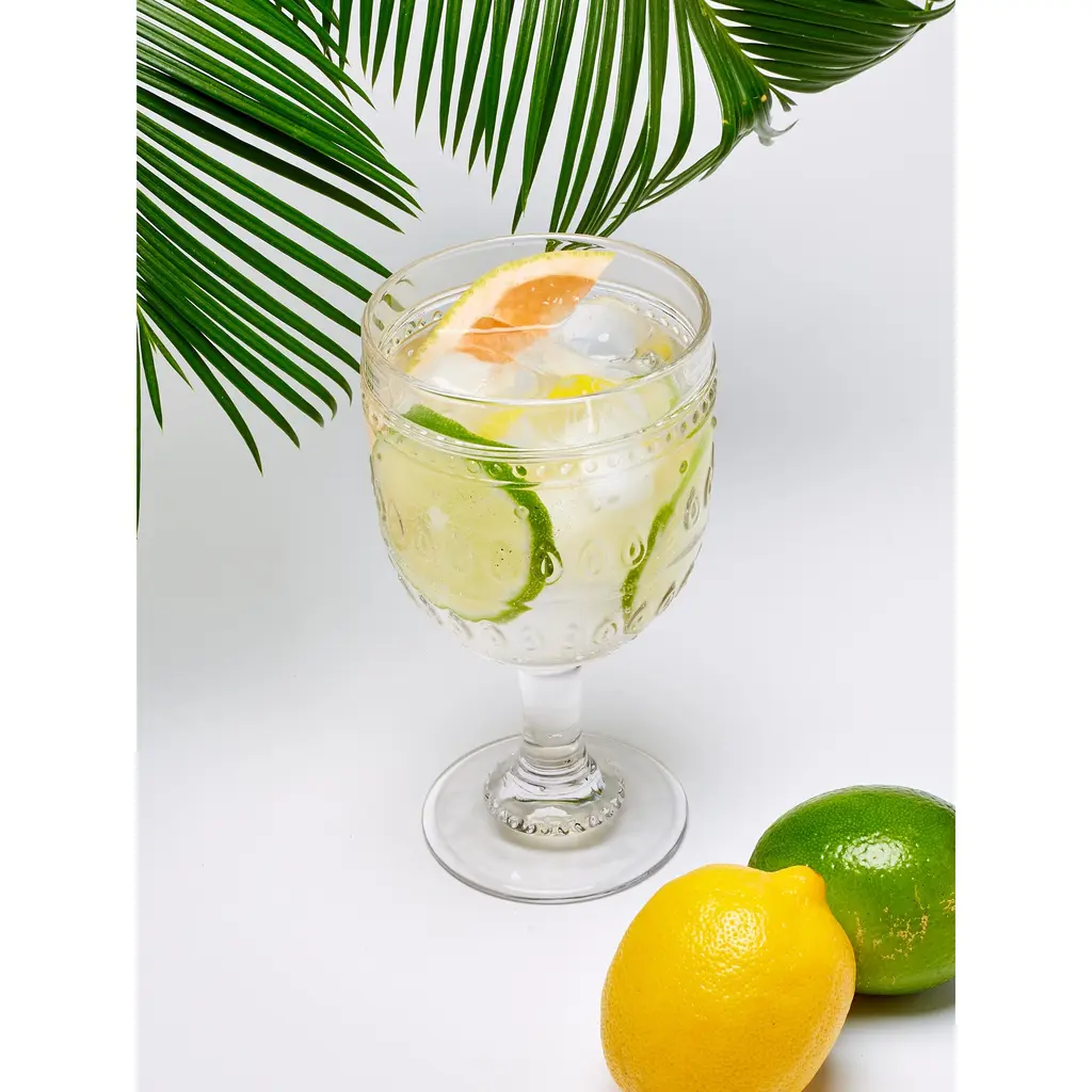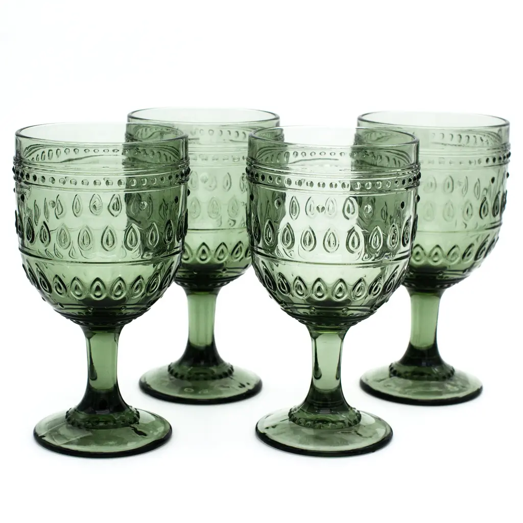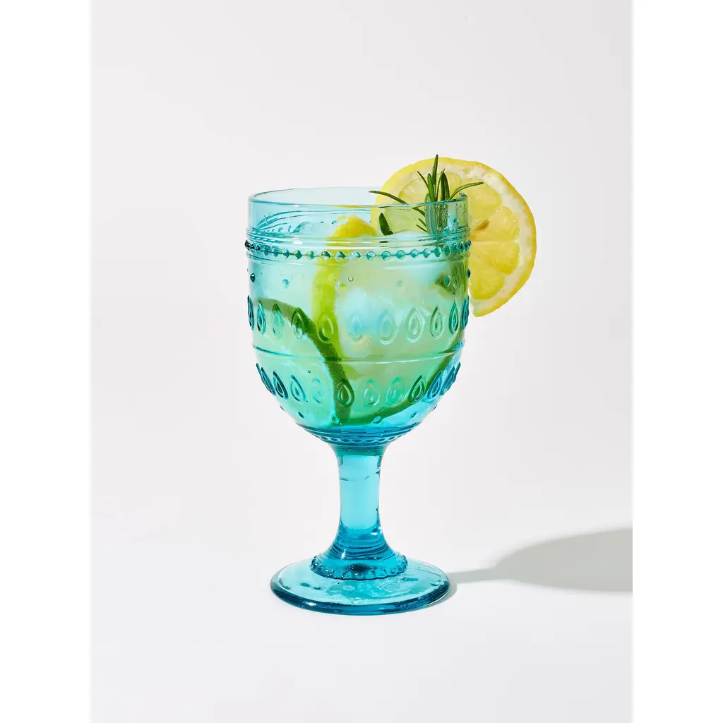 Upgrade your glassware collection with these Euro Ceramica Fez wine goblets. Whether it's for a casual dinner or a formal occasion, these textured glasses add a touch of refinement to any setting. With a 12 oz capacity, they are perfect for serving your favorite wine or beverage. Mix and match with other dinnerware and flatware for a festive and bohemian vibe or keep it simple and elegant with matching tones.Microwave and Dishwasher Safe Dimensions: 3.56 in. x 3.56 in. x 6.5 in. / 12 oz Capacity