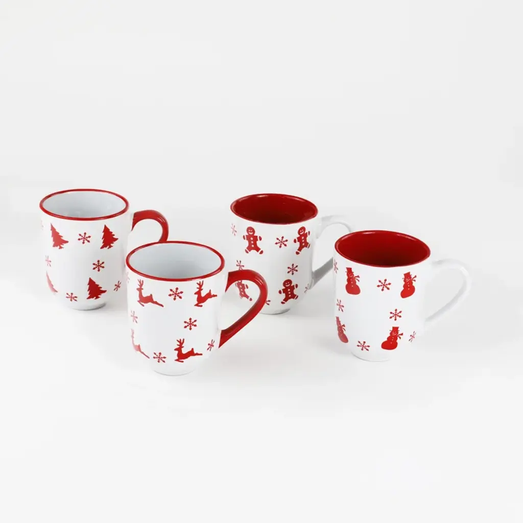 Euro Ceramica Winterfest 12oz Mugs Set Of 4, Assorted Winter Designs .