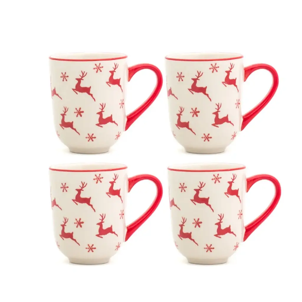Bring warmth to your holidays with this festive mug set. Each cup is uniquely designed for serving hot beverages during holiday gatherings with friends and family. Enjoy hassle-free cleanup with its convenient dishwasher-safe feature.