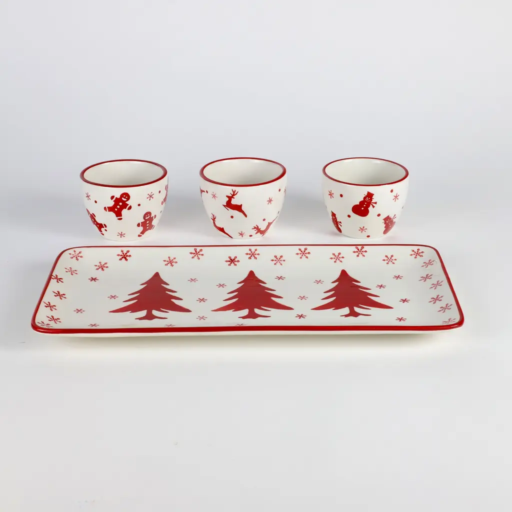 Euro Ceramica Winterfest 4 Piece Holiday Entertaining Set - 4 Piece Serving Set