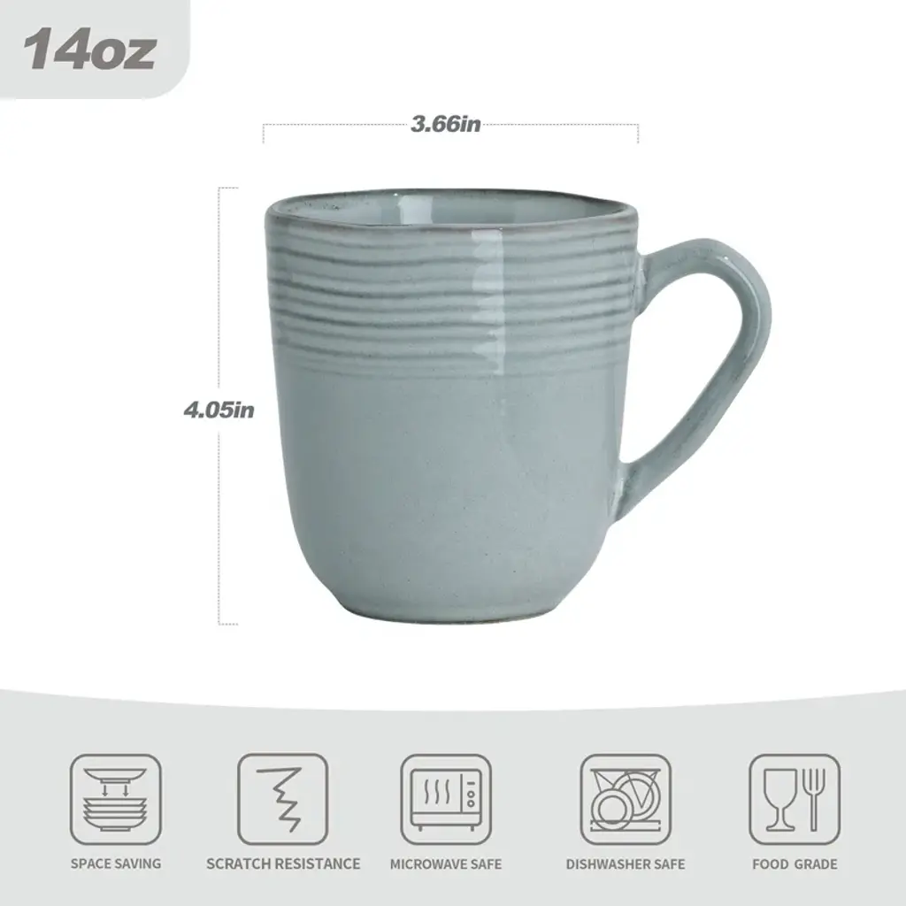 This dish set of exquisite and delicate tableware set includes 4 coffee mugs, which can meet the needs of 4 people. Each teacup is designed by experienced designer, dishes carved with clear and smooth threaded lines,enhancing the taste experience of every dish. The drinkware set is patiently polished by the craftsmen, and the sturdy stoneware determine the long-lasting quality of tableware. Excellent material, 100% microwave and dishwasher safe. Aesthetics and safety coexist, suitable for any dining occasion.