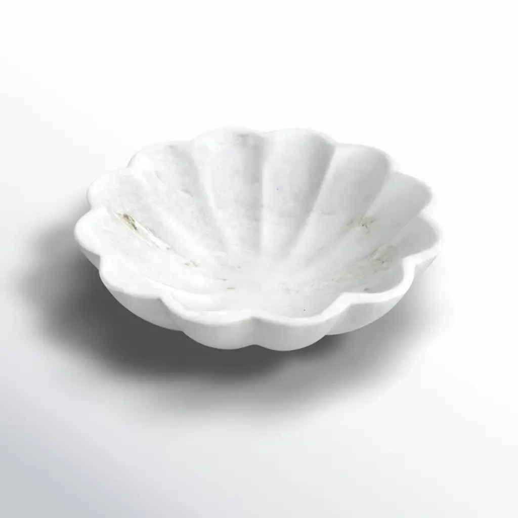 Elegantly designed for decoration, this carved marble dish can also meet your serving needs. It is shaped like a flower and will be a beautiful addition to the table full of salad, potatoes or a healthy serving of vegetables. The floral design also makes it a great piece for holding a set of floating candles.