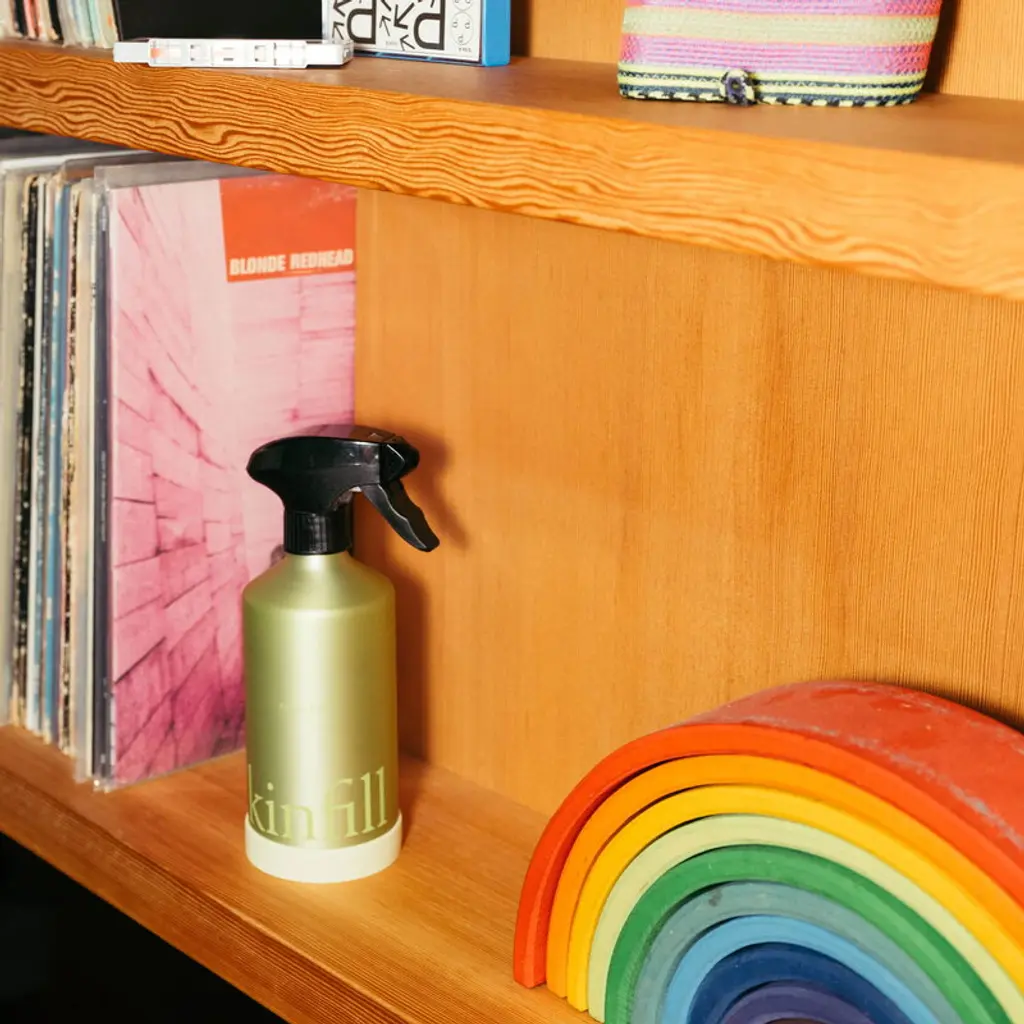 Kinfill's multi-surface cleaner makes any hard surface spotless and squeaky clean, whether you're wiping a wooden table or a marble countertop. This starter kit includes a refillable aluminum spray bottle and a separate tube of cleaner concentrate in a spicy and citric scent of tangerine. Perfected with a smooth satin finish, the Kinfill Ever Bottle is designed to last a lifetime. The idea behind Kinfill's blend-at-home concentrates and refillable bottles is to reduce the amount of plastic waste. The same bottles can be used over and over: pour the concentrate into the bottle, fill it with water and swirl gently – after you've used all of the cleaning product, repeat the steps! Refills are available separately, so next time, you'll only have to purchase more concentrate and continue using the same bottle. Kinfill's eco-friendly, biodegradable cleaning products are made from pure yet effective ingredients that do not contain chemicals that could be harmful to you or the environment. Suitable for: Wood (such as uncoated, oiled, or lacquered wood) Metal (such as aluminum, brass, copper, chrome, gold, stainless steel) Stone (such as marble, limestone, travertine, granite, soapstone, quartz) Composite (such as concrete, terrazzo, cement, fiberglass) Plastic (such as acrylic, vinyl, PVC, PET) Glass (such as laminated, tempered, or colored glass, mirror glass) Ingredients: Ethoxylated alcohol, Ethoxylated alcohol propoxylate, Ethoxylated alkyl amide, Octylglucoside, Methylglycine Diacetic Acid, Isopropyl Alcohol, 2-bromo-2-nitropropano-1,3-diol, 2-octyloizotiazol-3(2H)-on, Citric Acid, Perfume