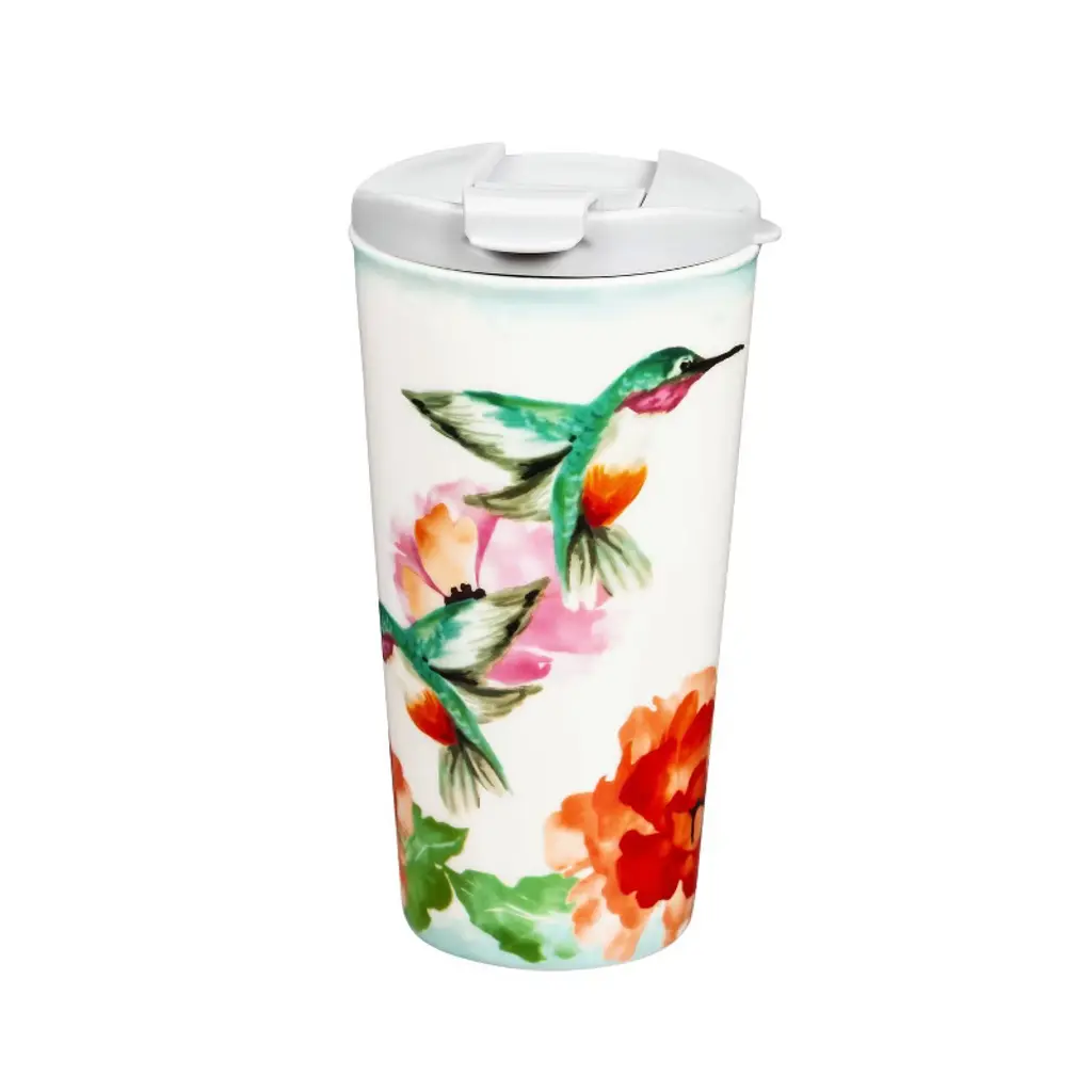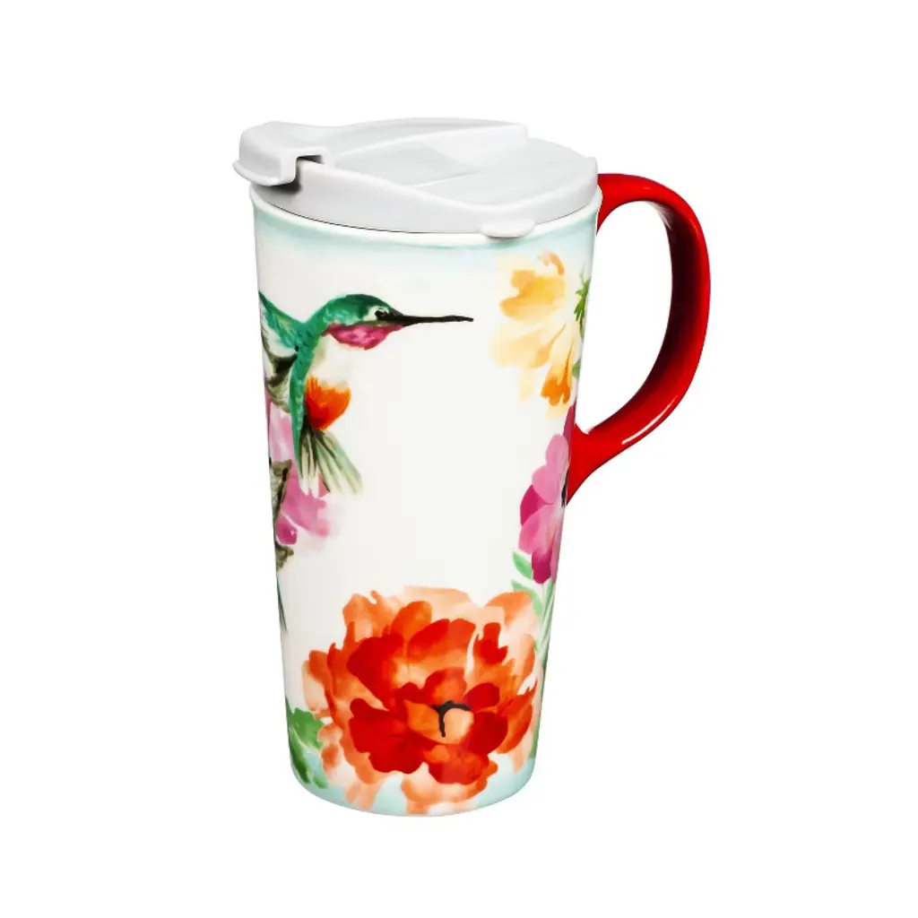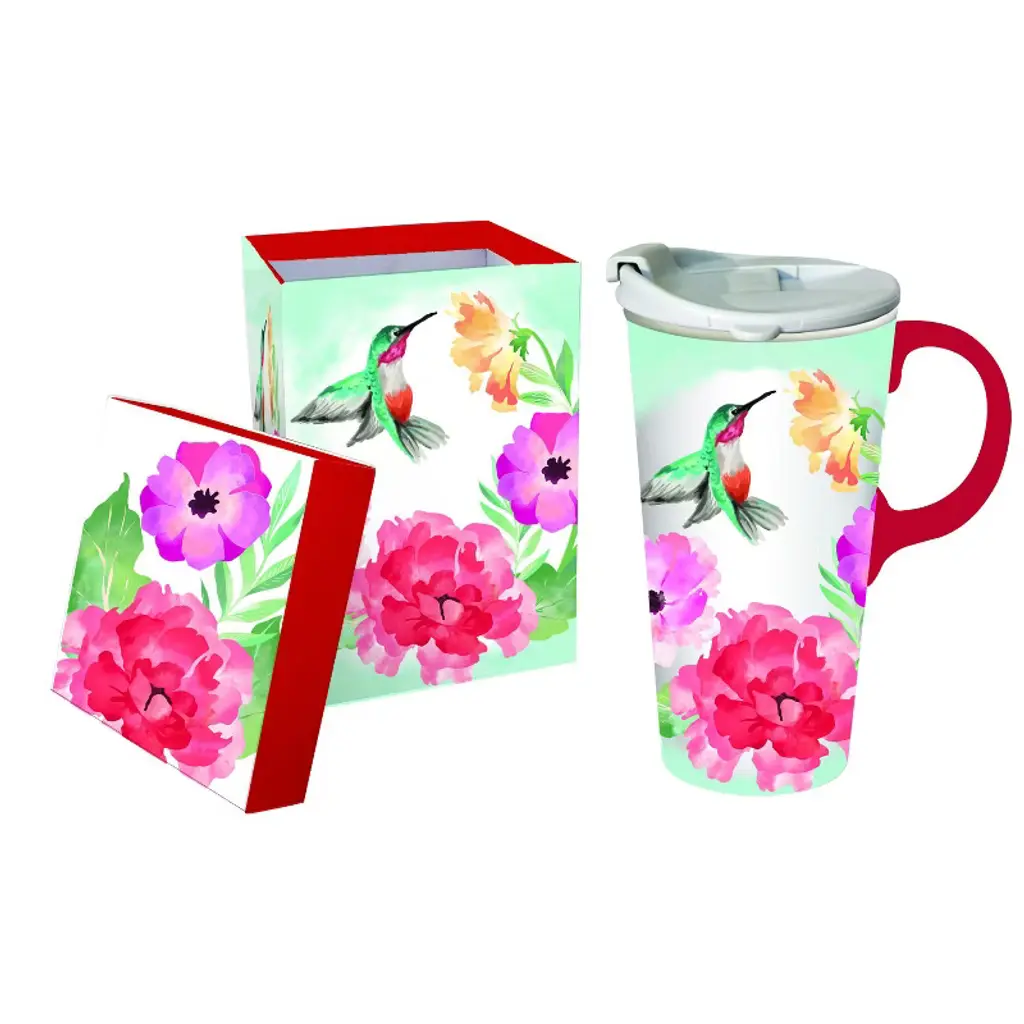 Evergreen Ceramic Travel Cup, 17 Oz. ,W/box, Garden Hummingbird
