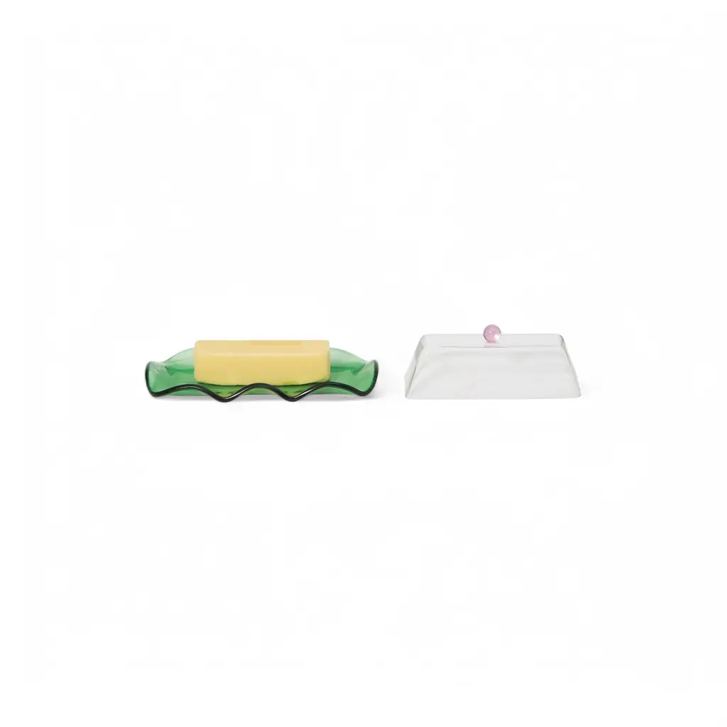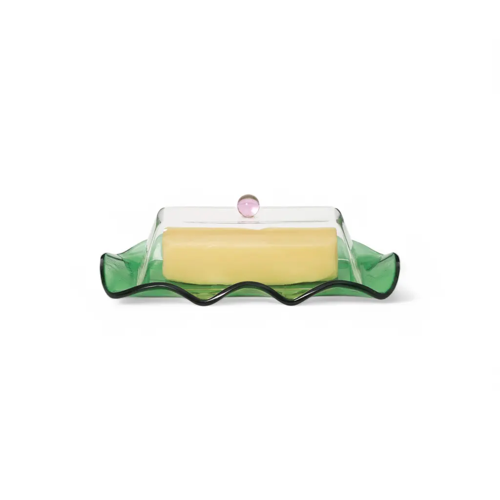 This modern butter dish designed by Sophie Lou Jacobsen transforms an everyday staple into an elegant centerpiece. Featuring a playful wavy tray crafted from colored glass and a clear domed lid topped with a delicate, rounded knob, it’s as practical as it is charming. The subtle curves and thoughtful details elevate daily rituals—from leisurely breakfasts to dinner gatherings. A striking addition to any contemporary kitchen or table, the Everything Nice Butter Dish reminds us that the simplest moments deserve special touches.