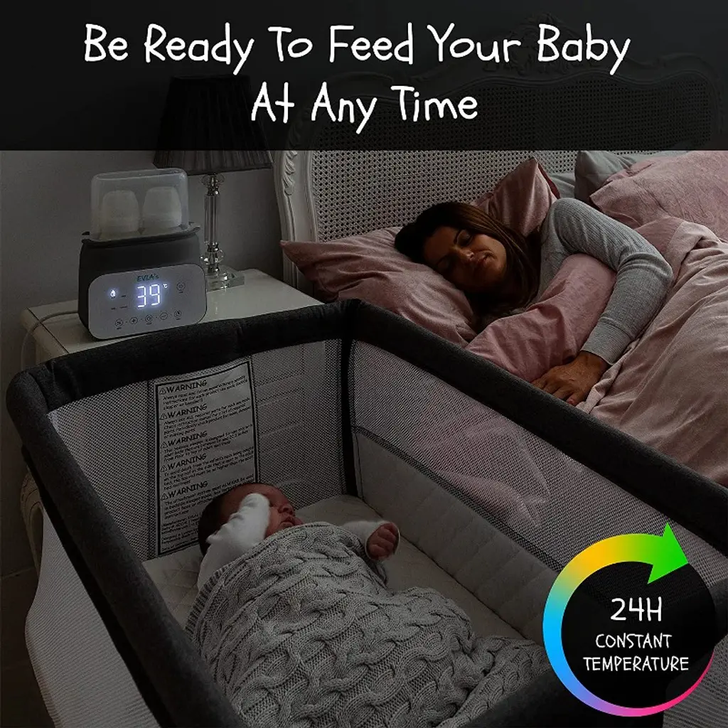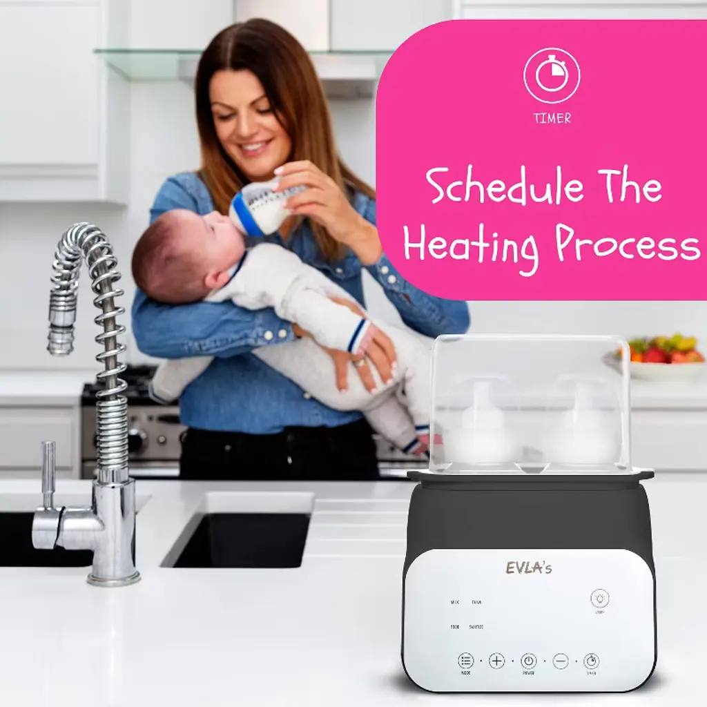 Evla's Double Baby Bottle Warmer, Defrost & Warm Milk, Sanitize Baby Bottles, Dark Gray