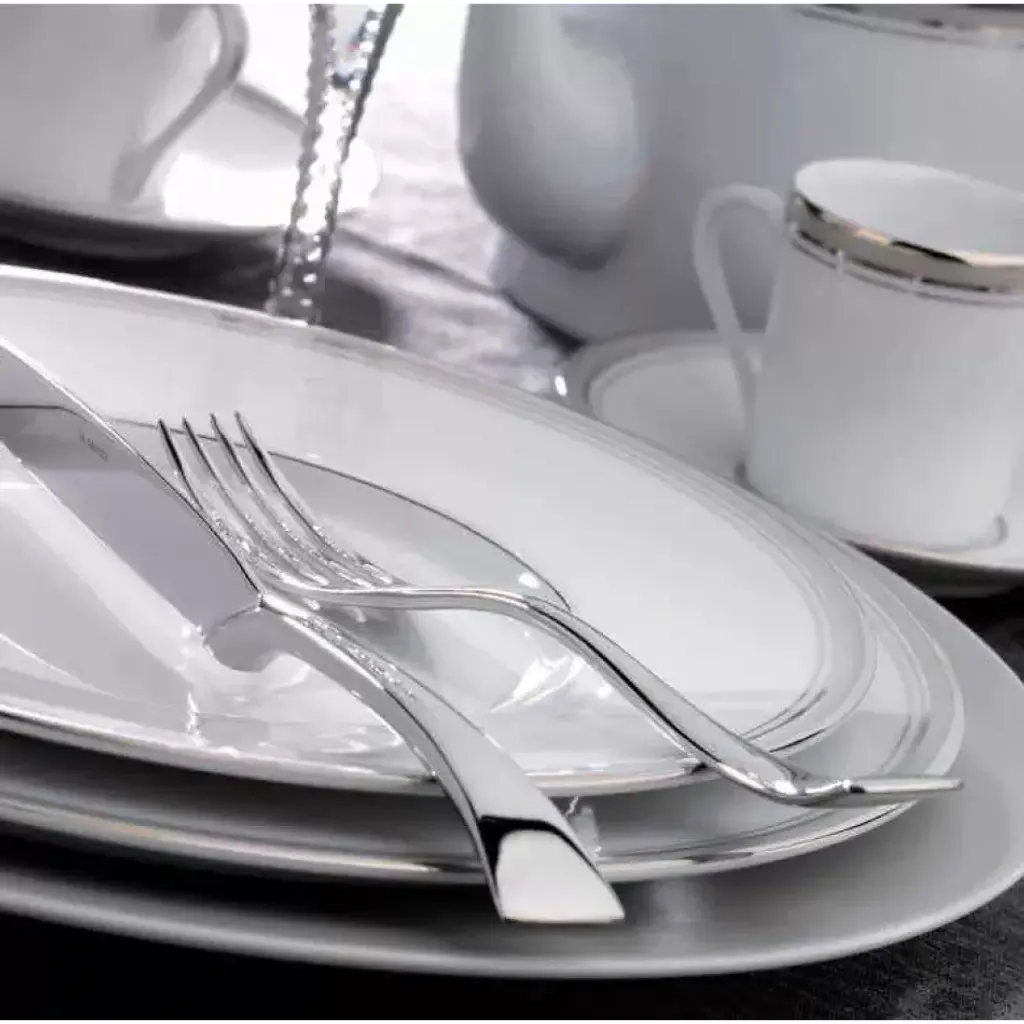 Grace and simplicity are brought to life with Excellence Grey Dinnerware. This collection has subtle grey borders edged with platinum. Five piece place setting includes dinner plate, dessert plate, bread & butter plate, teacup and saucer. Founded in 1826, Deshoulières is the leading French porcelain maker today. Their fine white Limoges porcelain is strong enough for everyday use. Their style is well known around the world. The painters and decorators have generations of knowledge. Inspired by trends from both interiors and fashion, their patterns are always refined. Deshoulières embodies a true spirit of French style. With their new collections, Deshoulières delights everyone from homeowners to professional chefs. Invite elegance to your table with Deshoulières.