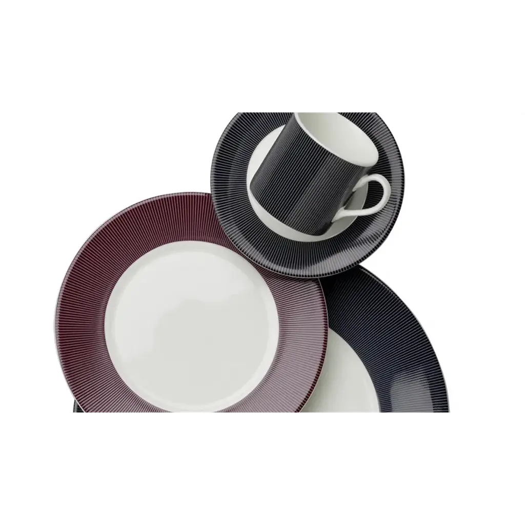 EXELSIOR unites a unique haptic with optical finesse in an uncompromisingly modern style. The unconventional design of fine lines on the edges and harmony of proportion make this porcelain series quintessentially elegant. In combination with the eponymous version in glass, EXCELSIOR presents an array of creative options – it can be used for festive and formal dinners or high-end cuisine.