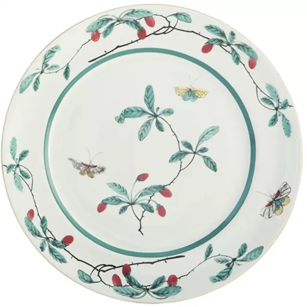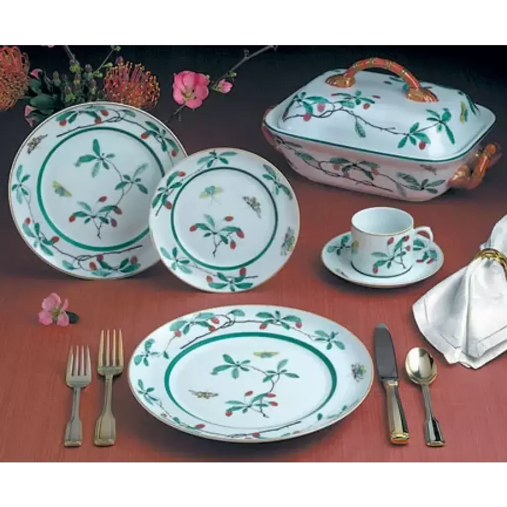 The can cup is a unique shape not often found in dinner services. A favorite with brides, Mottahedeh specializes in luxurious patterns and unique, elegant shapes that are reproduced from china found in museums and historical societies. The patterns feature complex and vibrant colors, and hand-painted gold decoration. The pieces are surprisingly fresh and timely, and look wonderful in both contemporary and traditional dining rooms.