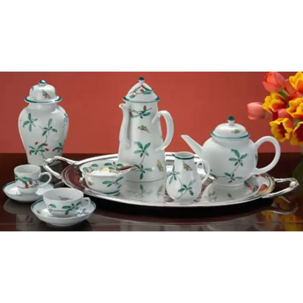 A tea service is an elegant addition to a dinner pattern. A favorite with brides, Mottahedeh specializes in luxurious patterns and unique, elegant shapes that are reproduced from china found in museums and historical societies. The patterns feature complex and vibrant colors, and hand-painted gold decoration. The pieces are surprisingly fresh and timely, and look wonderful in both contemporary and traditional dining rooms.