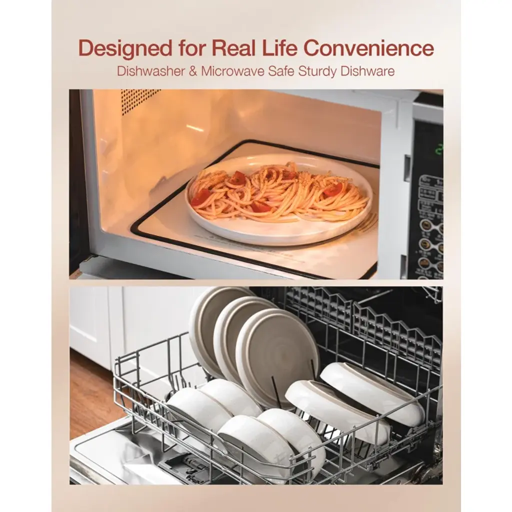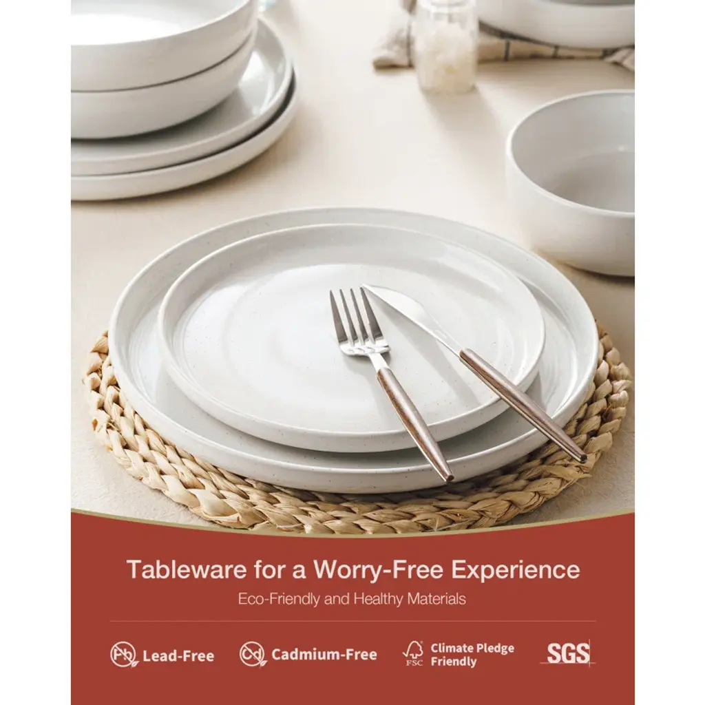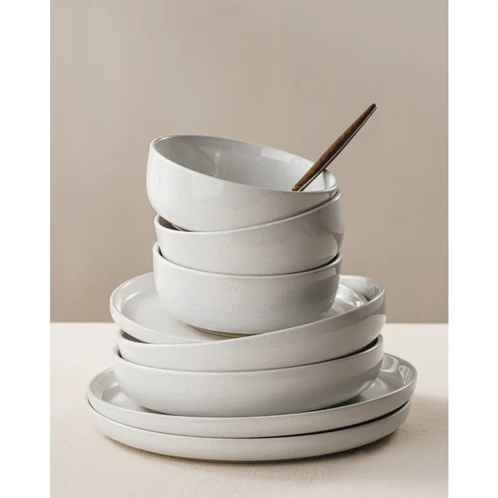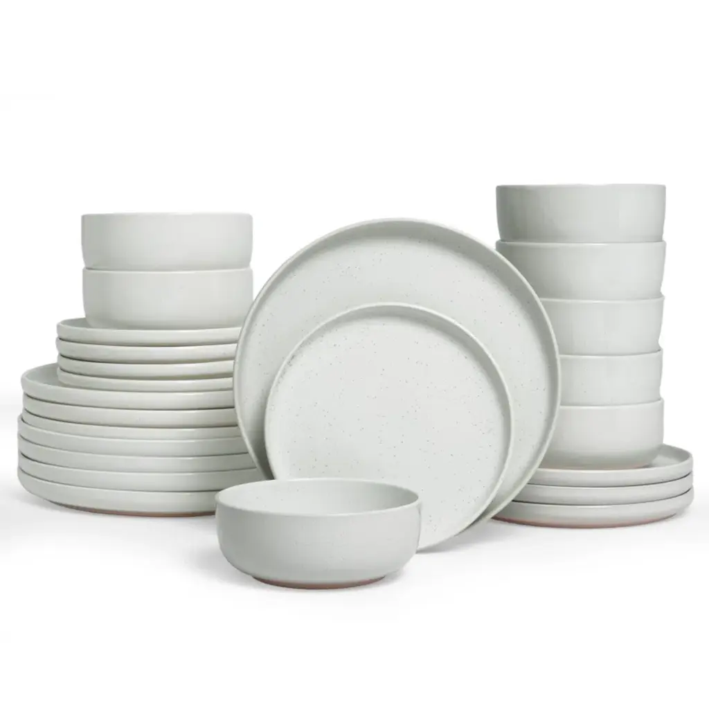 This dinnerware set for eight offers a sleek, minimalist design with a playful speckled pattern that adds a touch of whimsy to your table. Crafted from stoneware, each piece is semi-handmade and finished with a glossy, lead-free glaze, making it a safe and stylish choice for family meals or gatherings with friends. This set includes dinner plates, salad plates, and cereal bowls, all of which are dishwasher and microwave safe for easy care. Plus, they're chip and scratch-resistant, so you can enjoy their charm meal after meal. And when you're done, these stackable pieces make storage a breeze.