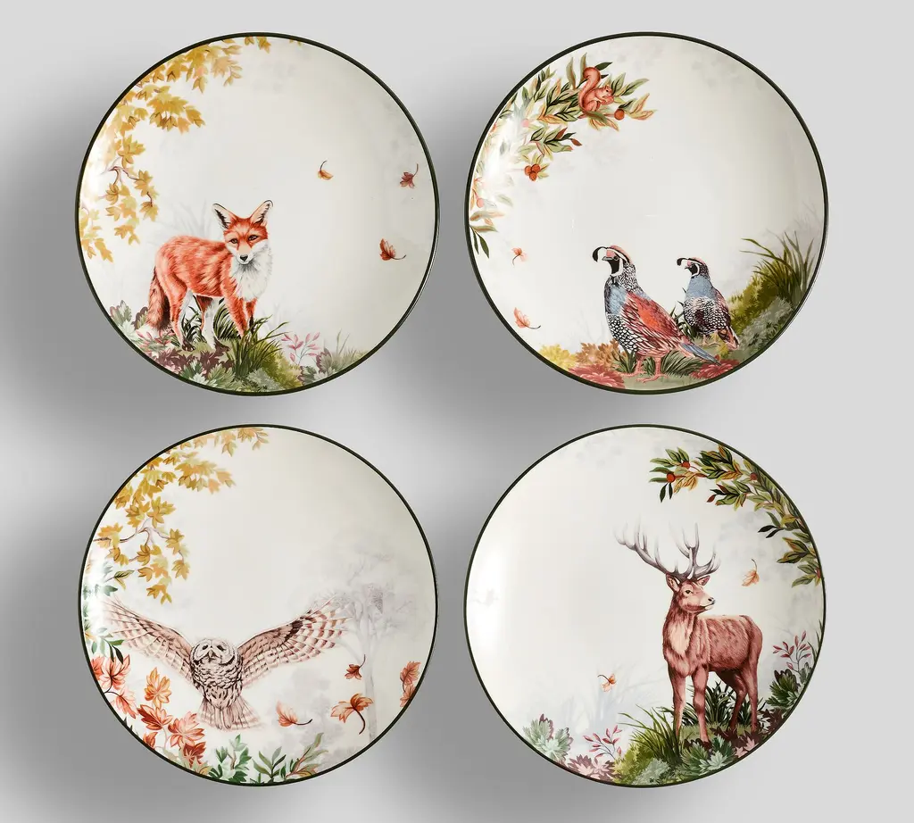 Fantastical Forest Stoneware Salad Plates - Mixed Set Of 4