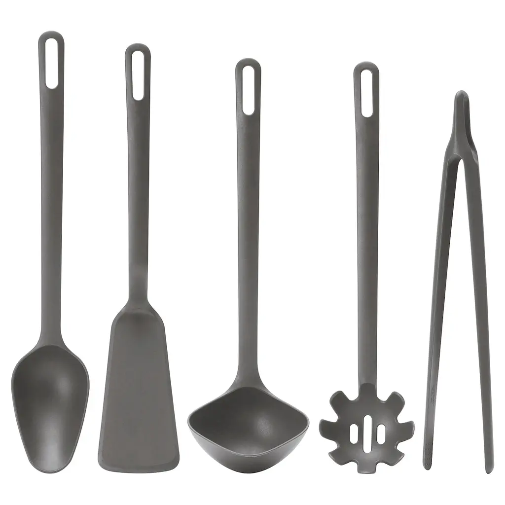 Equip your kitchen with the Farberware Classic 5-Piece Kitchen Tool Set, a durable and versatile collection designed to handle a wide range of cooking and baking tasks. This set includes a slotted turner, ladle, slotted spoon, basting spoon, and strainer, covering all the basics needed in any busy kitchen. Each tool is built with a nylon head, making it safe to use on nonstick cookware, while the stainless steel handles provide strength and durability. The black plastic hanging loops at the ends of the handles offer convenient wall or rack storage, helping to keep your space organized. Whether you're flipping fried fish, stirring hearty stews, or serving savory sauces, this set keeps your most-used utensils at your fingertips. All pieces are dishwasher safe, allowing for quick and easy cleanup after meals. The compact, coordinated design means this kitchen tool set is not only functional but also complements any kitchen décor. Designed for everyday reliability, this set is ideal for any home cook or baker looking for dependable kitchen accessories that deliver results with every use.