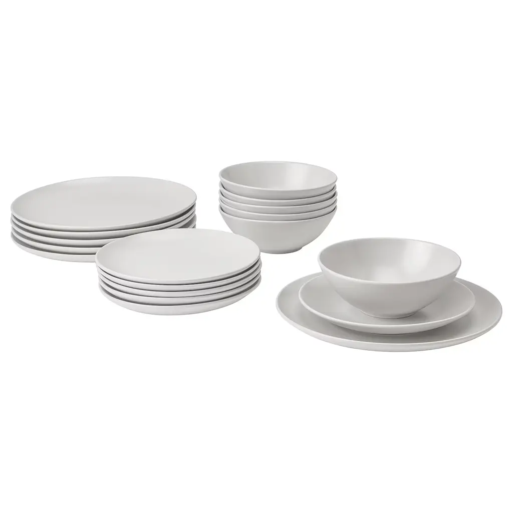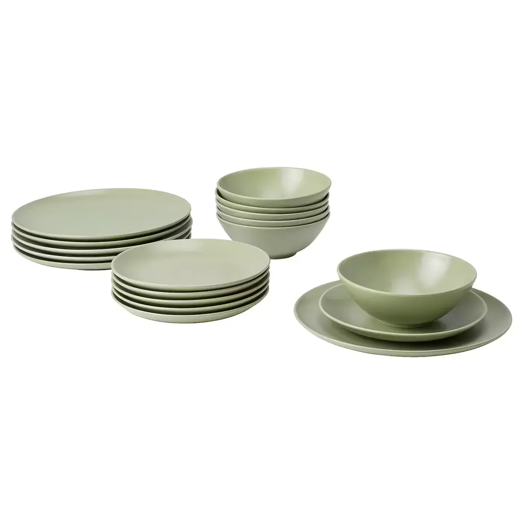 FÄRGKLAR 18-piece dinnerware set - matte light turquoise. The dinnerware’s simple, functional design is easy to coordinate with other colors, shapes or different types of glazing – and makes FÄRGKLAR the perfect base for many occasions.