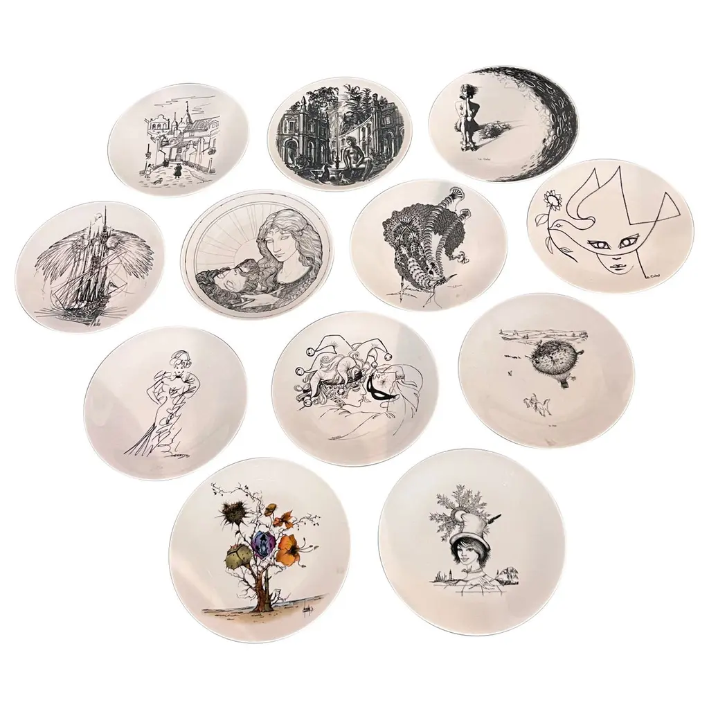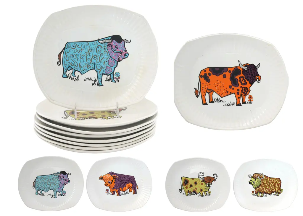 Farm life seen through an unlikely, almost surreal lens inspired the six different dessert plates making up this refined ceramic set. Each plate invites to be matched with the personality of tablemates: ironical, bucolic, or simple caricatures ranging from carrier pigeon and hippie bunny to the pig, the farm's boss. One of the plates finally gathers all these animals.