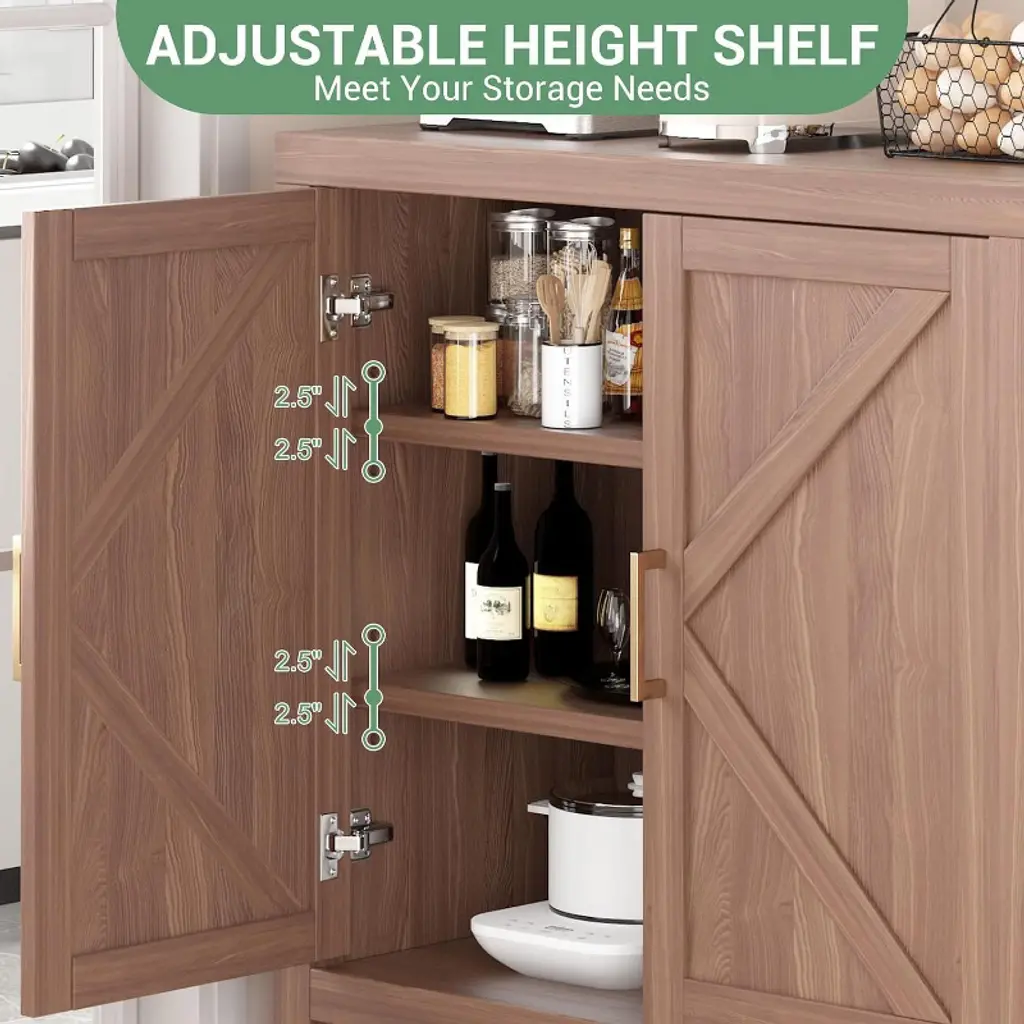 Farmhouse Storage Cabinet, Sideboard Buffet With X-design Doors, Kitchen Cupboard, Coffee Bar Console For Living Room, Entryway, Oak Color