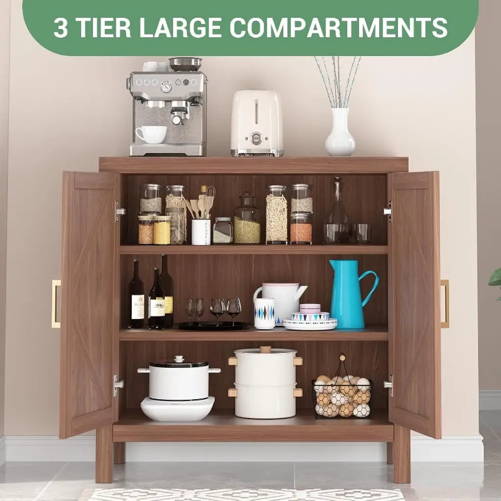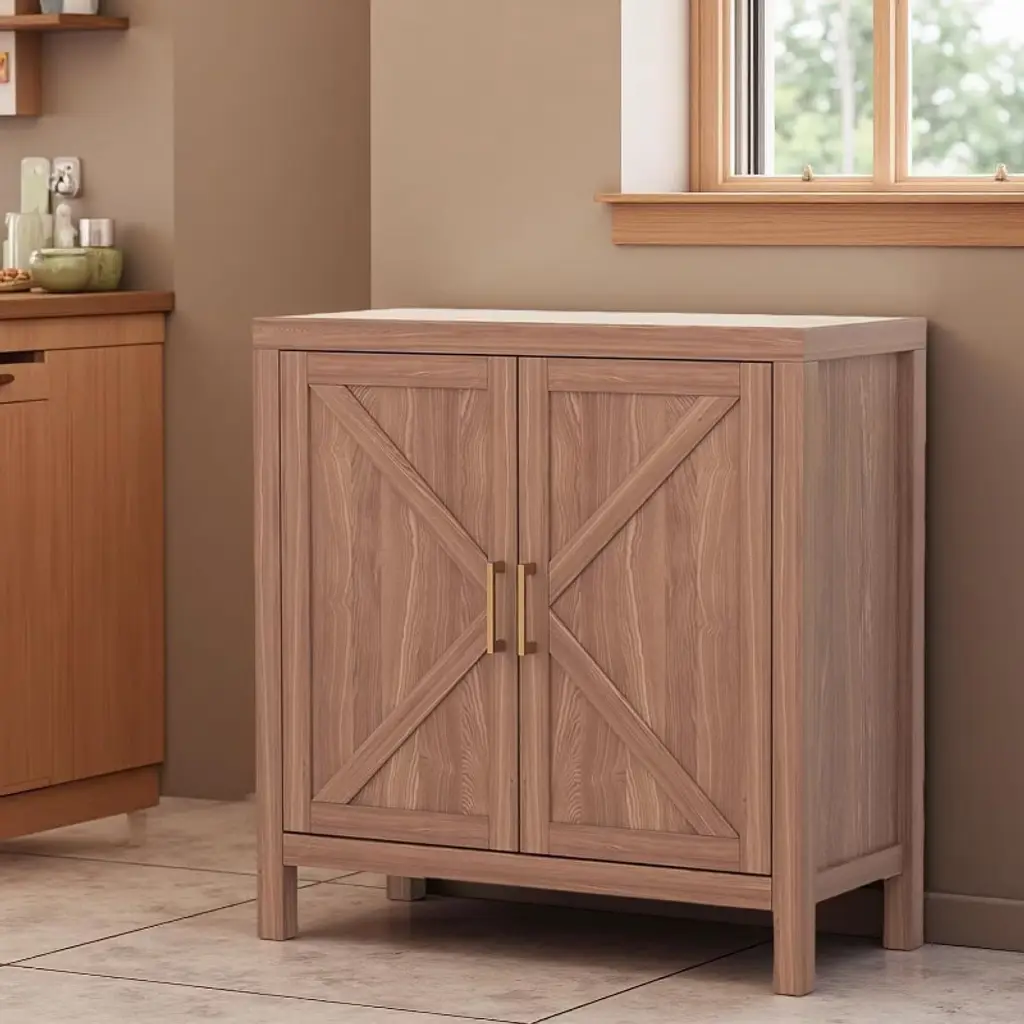 Bring the timeless charm of rustic design into your home with this farmhouse storage cabinet, featuring natural wood grain textures and distinctive X-shaped doors. Its classic look is highlighted by antiqued hardware and refined, subtle finishes, making it a stylish centerpiece in any room. Crafted with a robust frame and quality materials, this cabinet stands up to daily life, offering reliable stability for your dishes, kitchen tools, or family keepsakes. The generous storage space, thoughtfully designed in a compact footprint, keeps your dining area, kitchen, or entryway organized and uncluttered. Whether you use it as a buffet for dinner parties, a coffee bar for relaxed mornings, or a media console for movie nights, its versatile nature adapts to your needs and your lifestyle. Assembly is quick and straightforward, thanks to clear instructions and labeled parts, letting you set up and enjoy your new cabinet without fuss. Picture this piece seamlessly fitting into your daily routine, providing both beauty and functionality for your home.