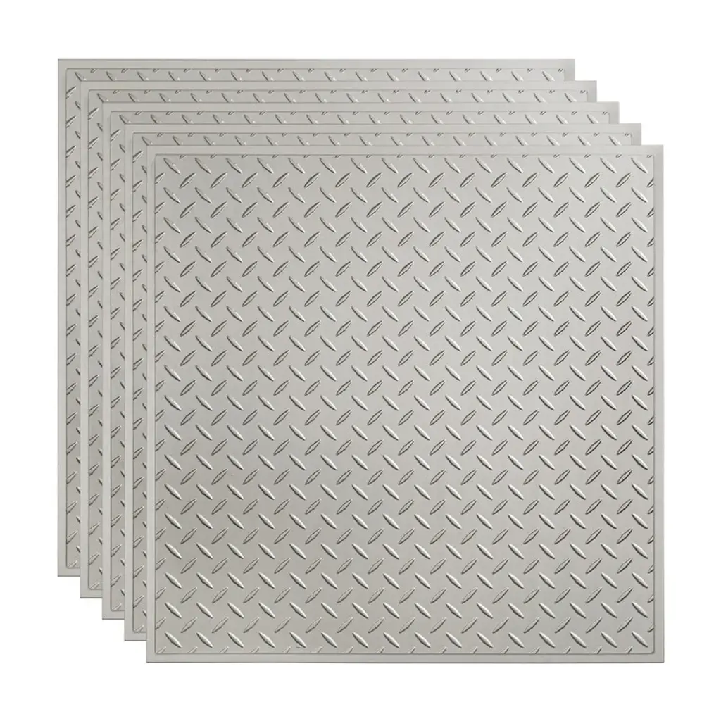 Fasäde Diamond Plate Revealed Edge Decorative Vinyl 2Ft X 2Ft Lay In Ceiling Panel In Argent Silver (5 Pack) - 5 Pack - Argent Silver