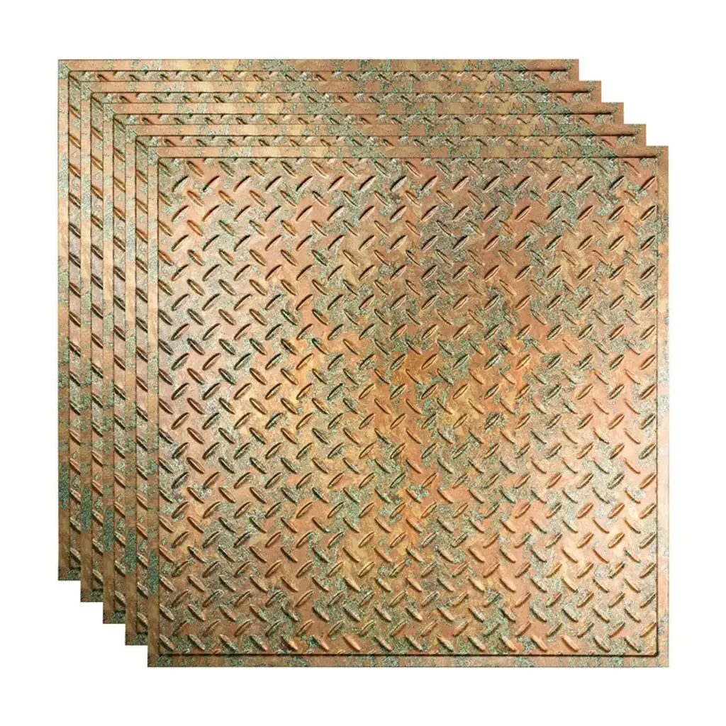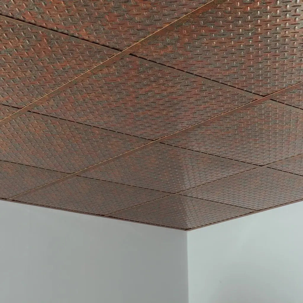 Fasäde Diamond Plate Revealed Edge Decorative Vinyl 2Ft X 2Ft Lay In Ceiling Panel In Copper Fantasy (5 Pack) - 12in X 12in Sample - Copper Fantasy