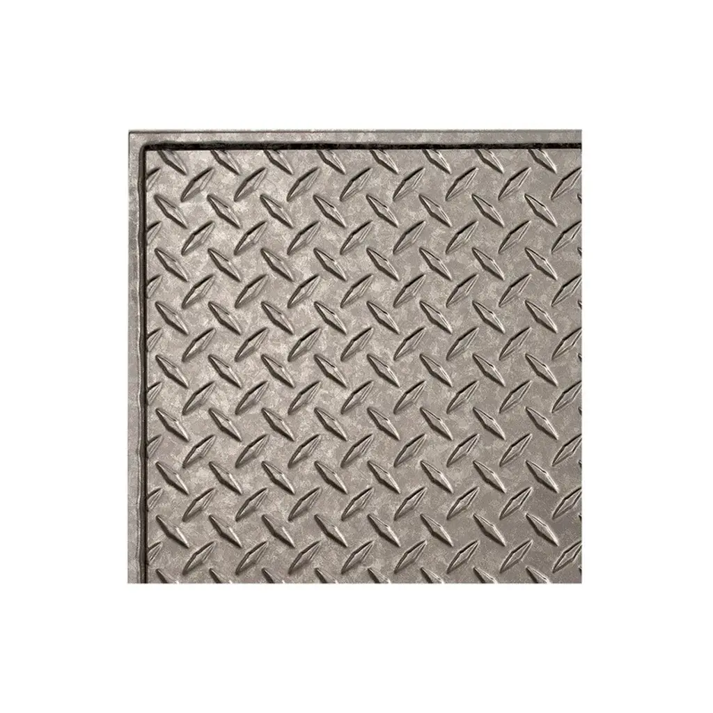 Fasäde Diamond Plate Revealed Edge Decorative Vinyl 2Ft X 2Ft Lay In Ceiling Panel In Galvanized Steel (5 Pack) - 12in X 12in Sample - Galvanized Steel