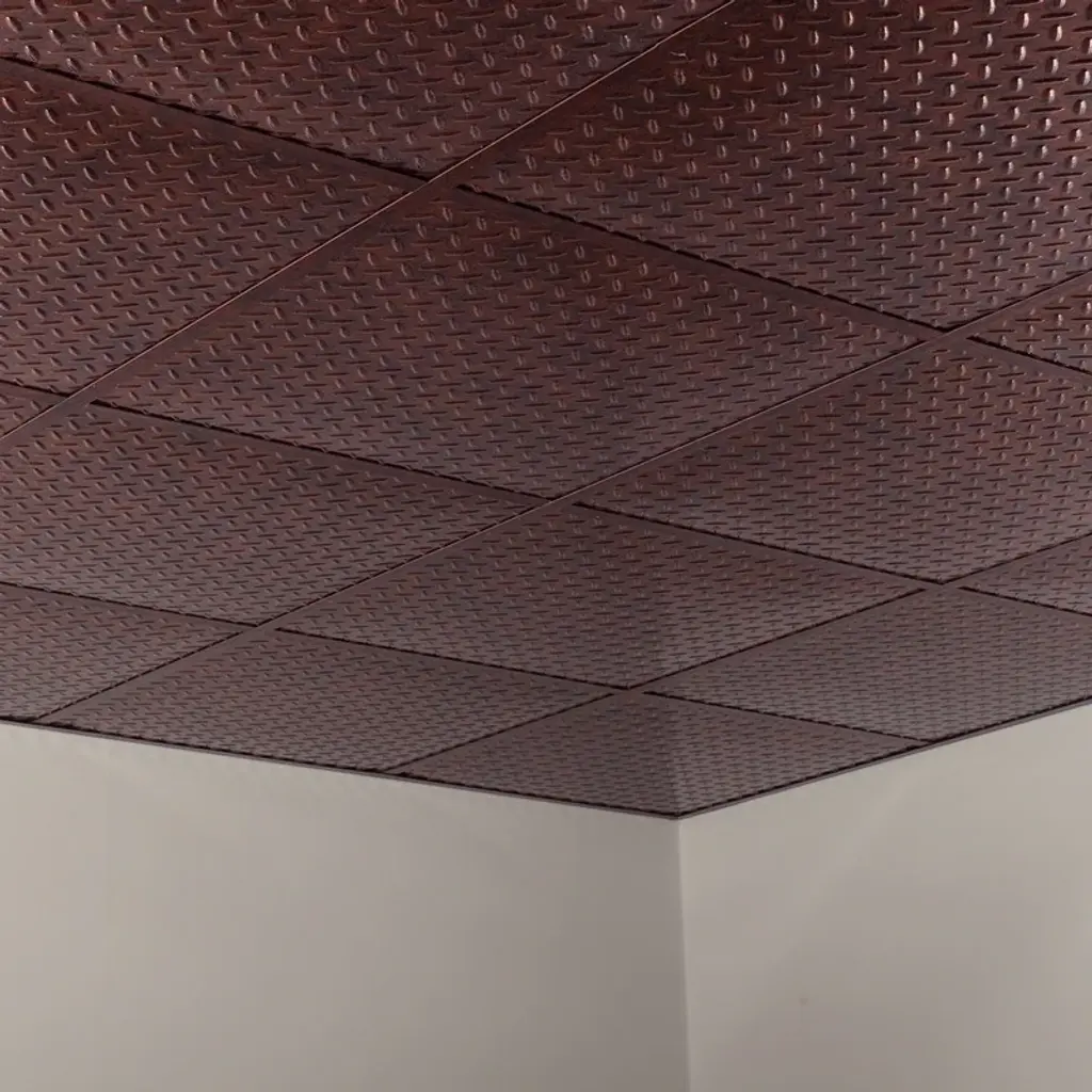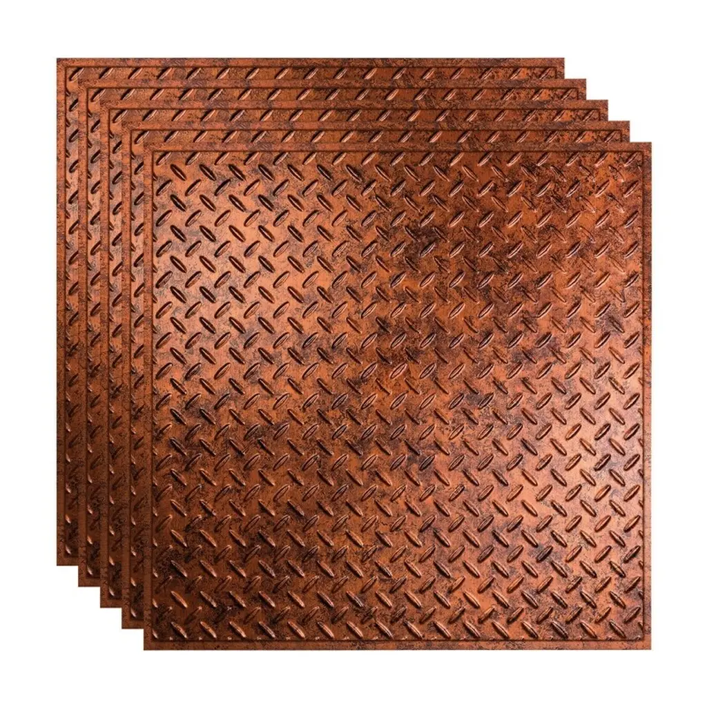 Fasäde Diamond Plate Revealed Edge Decorative Vinyl 2Ft X 2Ft Lay In Ceiling Panel In Moonstone Copper (5 Pack) - 5 Pack - Moonstone Copper
