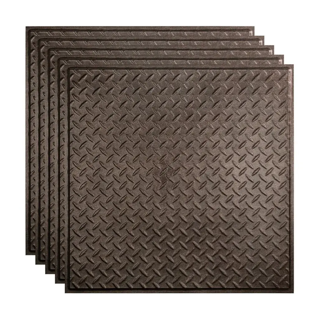 Fasäde Diamond Plate Revealed Edge Decorative Vinyl 2Ft X 2Ft Lay In Ceiling Panel In Smoked Pewter (5 Pack) - 5 Pack - Smoked Pewter