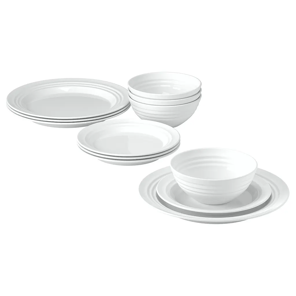 FAVORISERA 12 piece dinnerware set - white. Ideal for everyday use since the dinnerware is made of tempered opal glass that is highly resistant to chips, cracks and rapid temperature changes. Dishwasher safe, making it easy and convenient to clean. Lightweight, easy to lift and move.