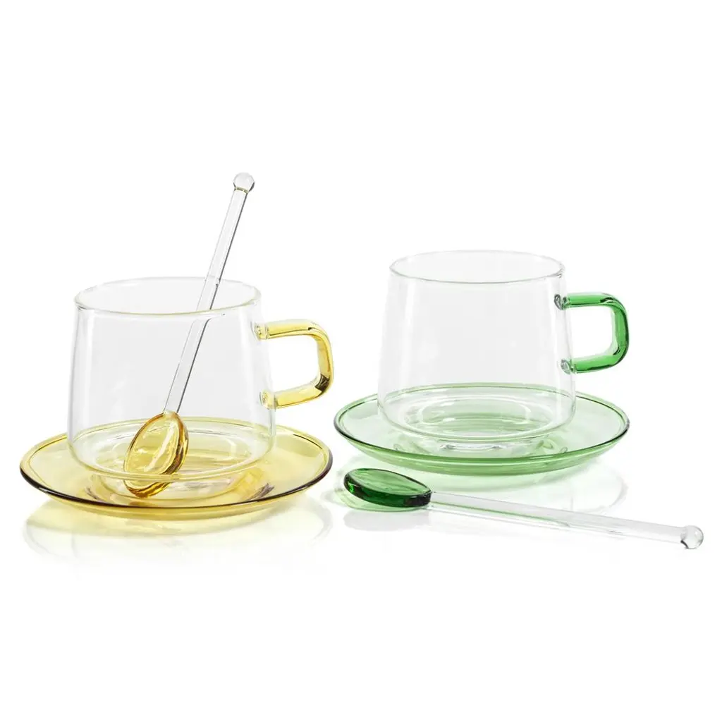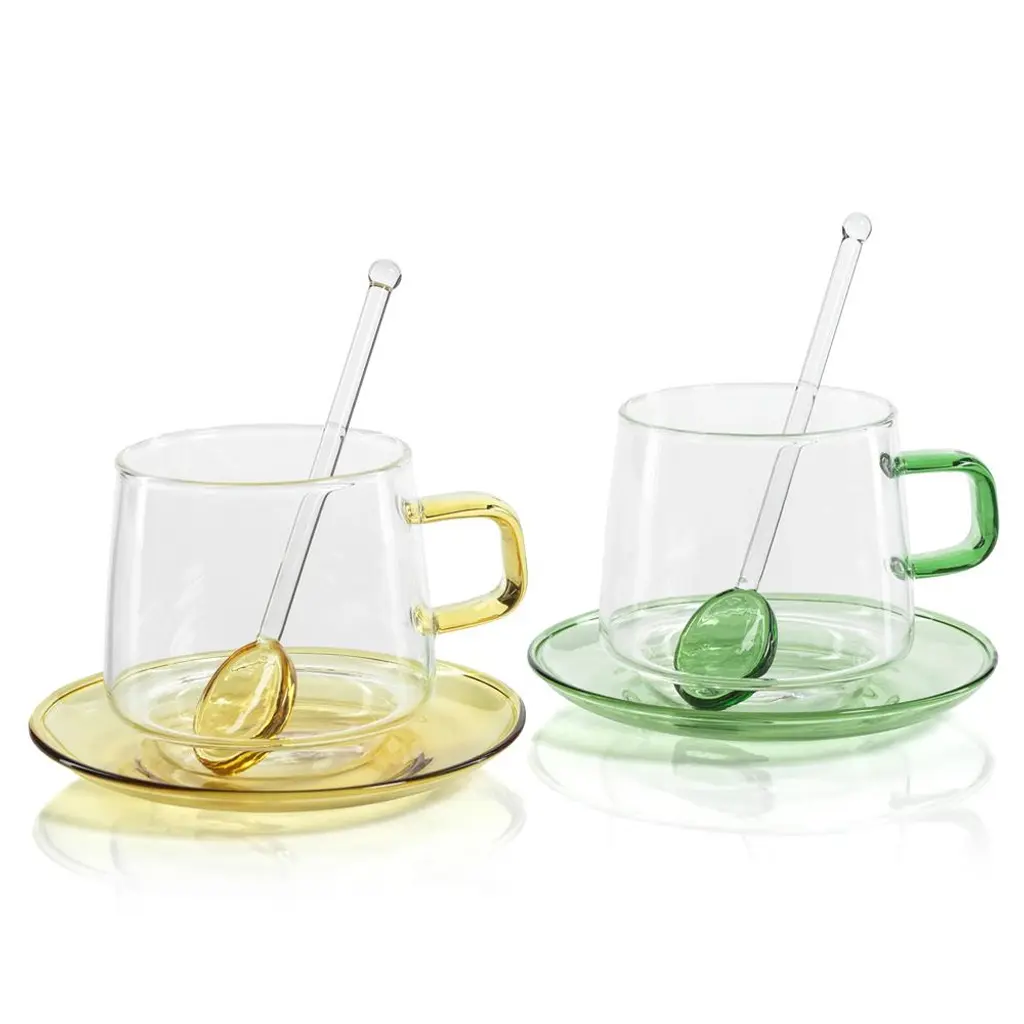 Faye Modern Classic Yellow Glass Tea Cup And Saucer - Set Of 4