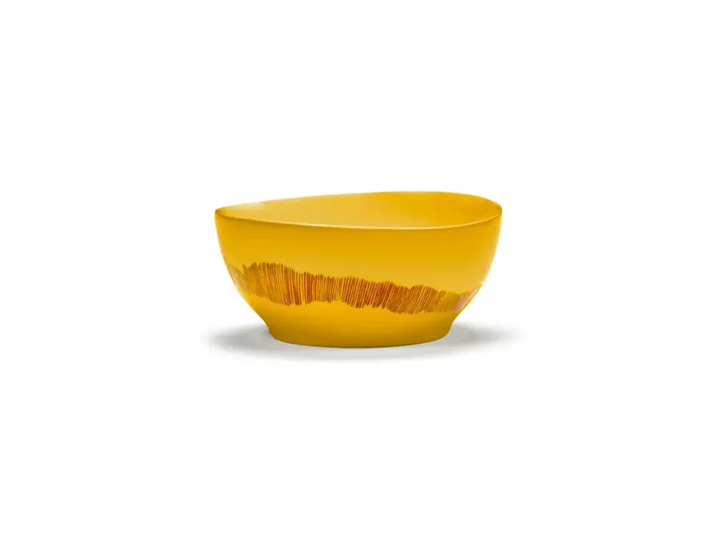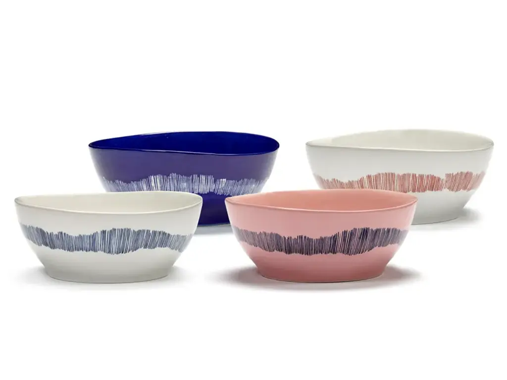Feast is a bowl in glazed porcelain stoneware.Material: stonewareProduct finish: glazedDishwasher resistant: yesMicrowave oven resistant: yesOven resistant: yesMax. oven temperature °C: 180 celsiusFood-safe: yes With an abundance of colours, vegetable prints and positive vibes, the Ottolenghi FEAST collection reflects everything its creator stands for. The chef Yotam Ottolenghi created this range of unique tableware with the most joyful of gatherings in mind: coming together with friends and family, sharing food and exchanging stories. On this project the chef joined hands with Italian artist Ivo Bisignano. “Ivo is a good friend as well as a soul-mate for the creative process in all Ottolenghi graphics”, Yotam Ottolenghi states. “His art, in whatever medium, is honest, expressive, bold, joyful and colourful. Attributes we strive to achieve in our food.”
