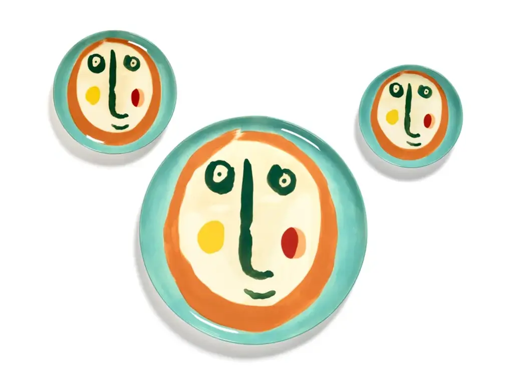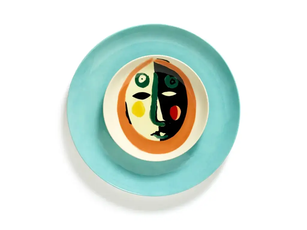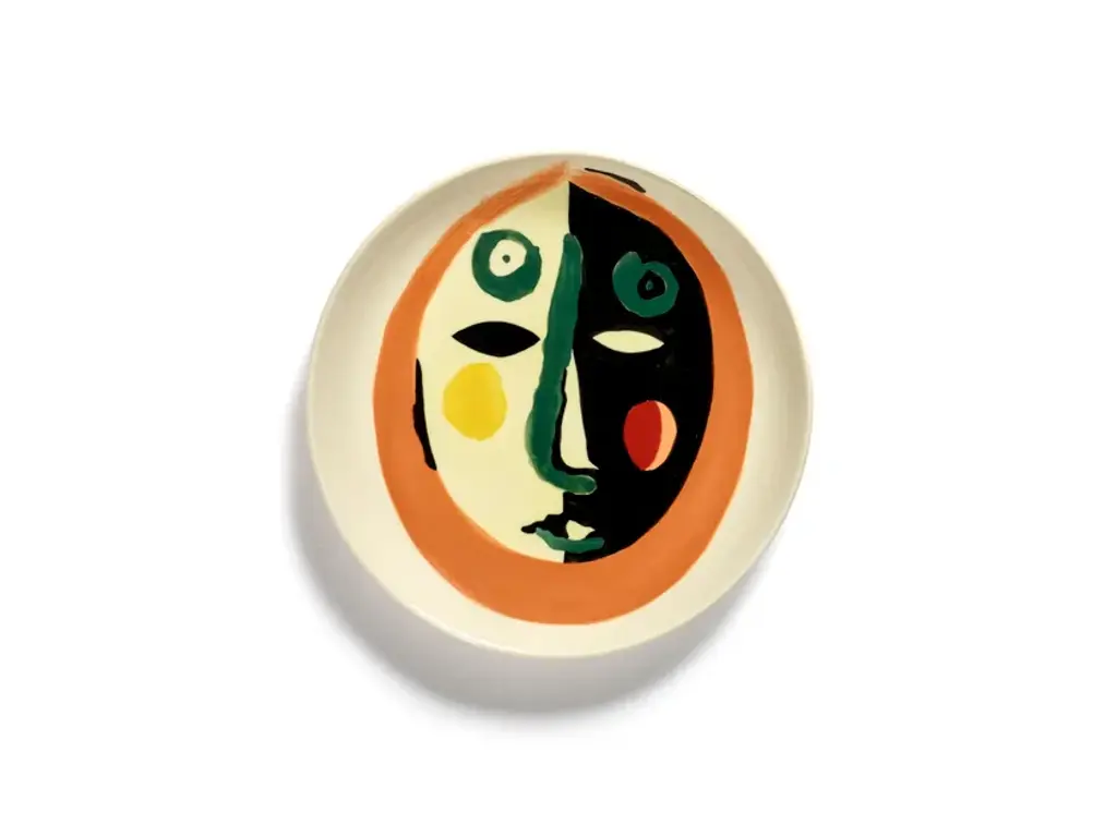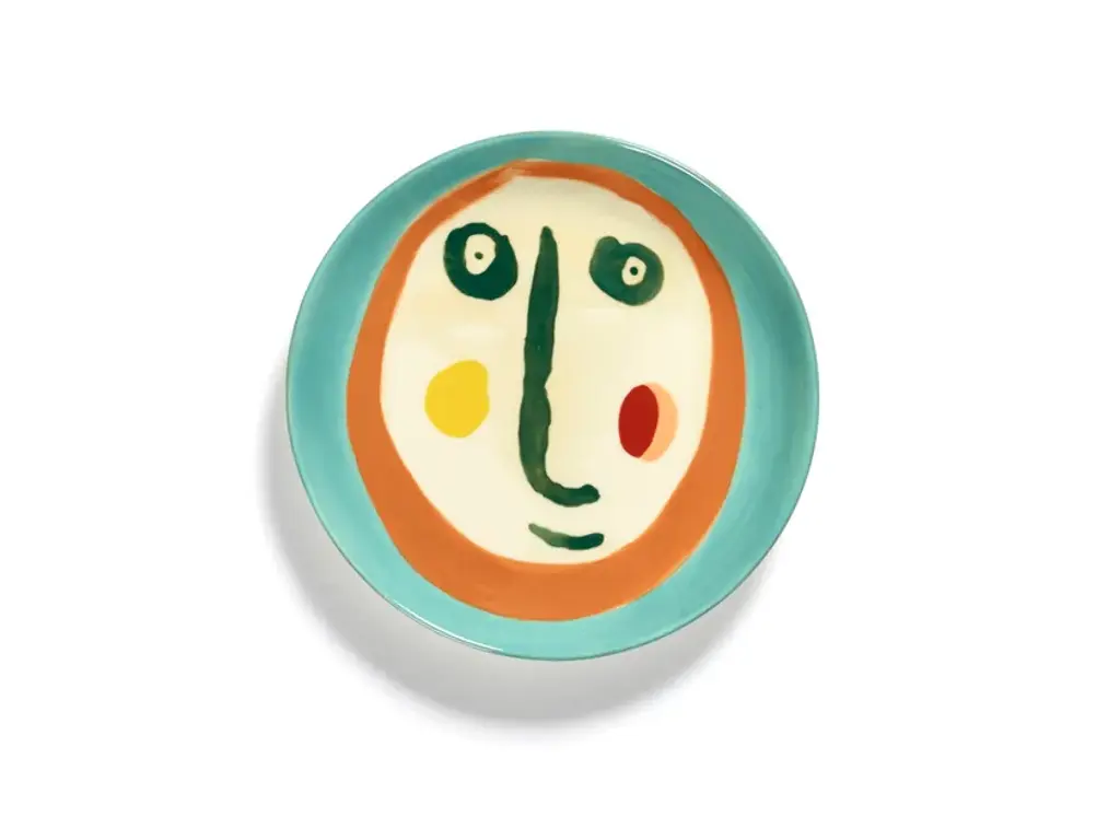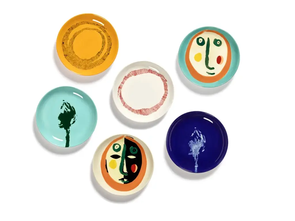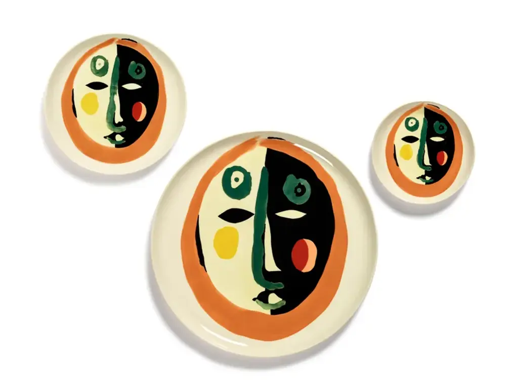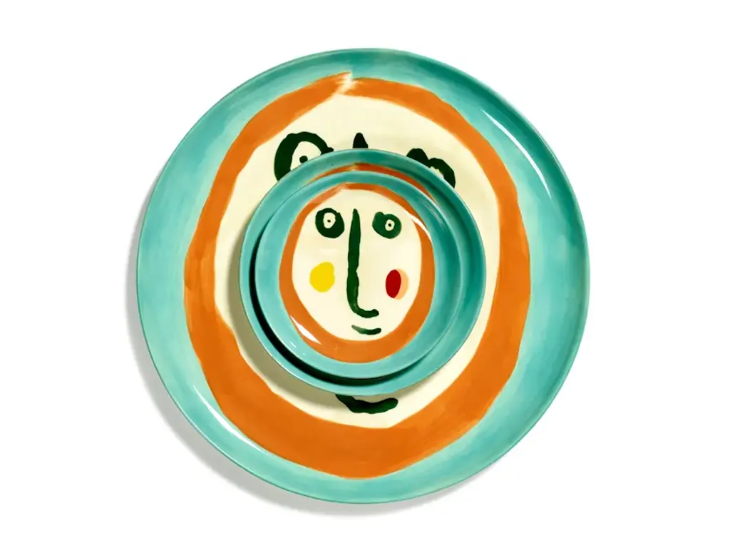 Feast is a flat dessert round plate in glazed porcelain stoneware.Material: stonewareProduct finish: glazedDishwasher resistant: yesMicrowave oven resistant: yesOven resistant: yesMax. oven temperature °C: 180 celsiusFood-safe: yes With an abundance of colours, vegetable prints and positive vibes, the Ottolenghi FEAST collection reflects everything its creator stands for. The chef Yotam Ottolenghi created this range of unique tableware with the most joyful of gatherings in mind: coming together with friends and family, sharing food and exchanging stories. On this project the chef joined hands with Italian artist Ivo Bisignano. “Ivo is a good friend as well as a soul-mate for the creative process in all Ottolenghi graphics”, Yotam Ottolenghi states. “His art, in whatever medium, is honest, expressive, bold, joyful and colourful. Attributes we strive to achieve in our food.”