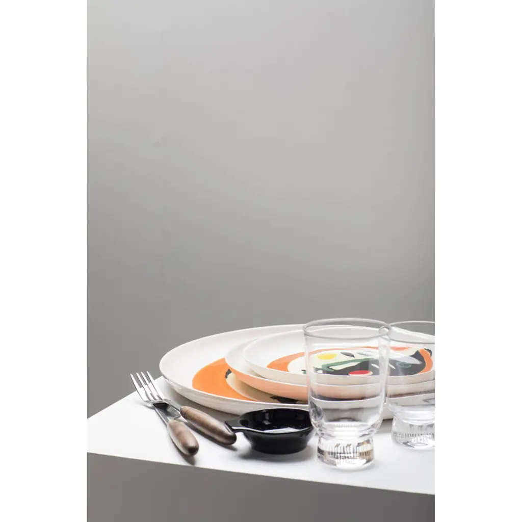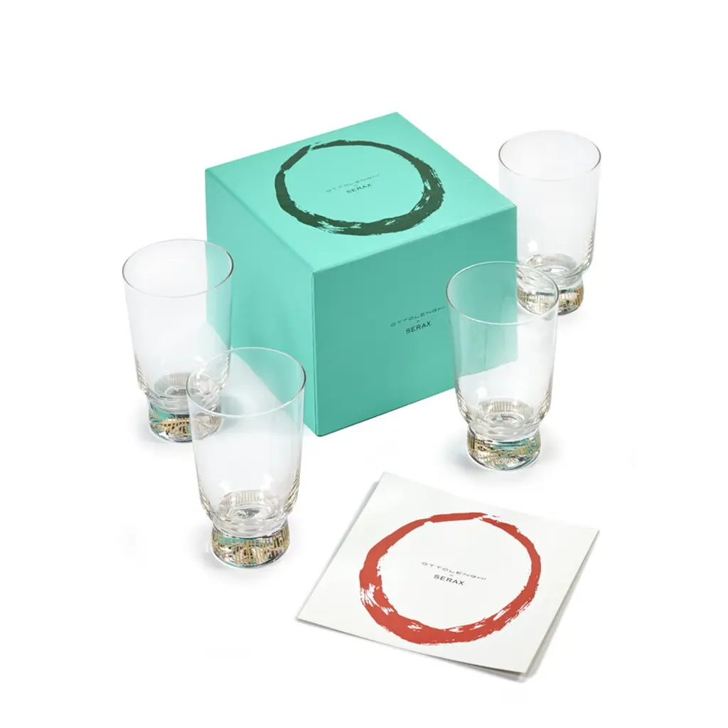 Serax's Feast glass is adorned with a pattern made of gold-colored stripes of different lengths and thicknesses. The stylish drinking glass brings a festive feel to even the most casual table settings and is perfect for drinks from water and juice to wines as well. The package contains four Feast glasses. The Feast dishware celebrates cheerful colors and positivity: it is created for gatherings with friends and family. Designed by Yotam Ottolenghi in collaboration with Italian artist Ivo Bisignano, the expressive tableware set includes plates, bowls, cups, glasses and serving dishes of different sizes and colors – something for every meal. The dishware can be mixed and matched but looks beautiful as individual pieces, too.