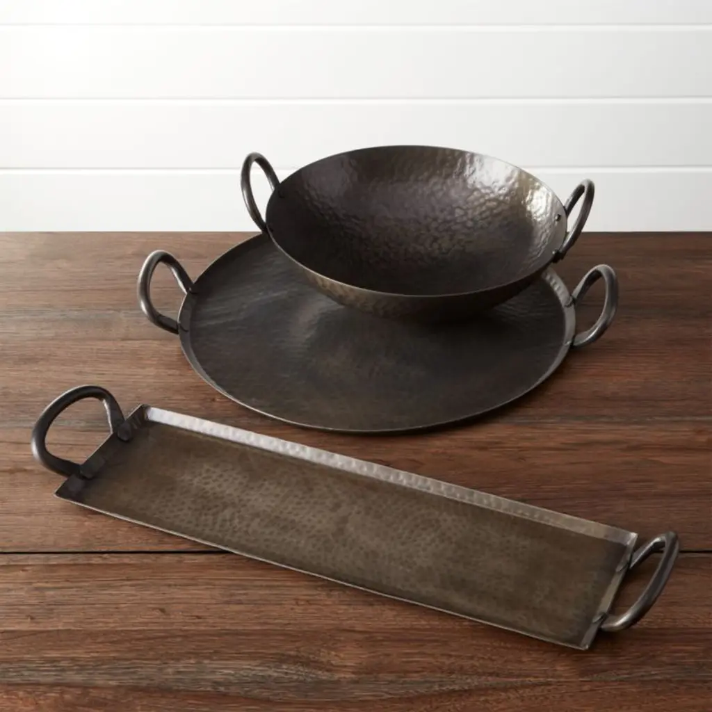 Accented with large loop handles, the generously proportioned Feast bowl proffers bounteous servings. Handcrafted of iron, each bowl has a rustic hammered surface that's been polished to a beautiful shine.